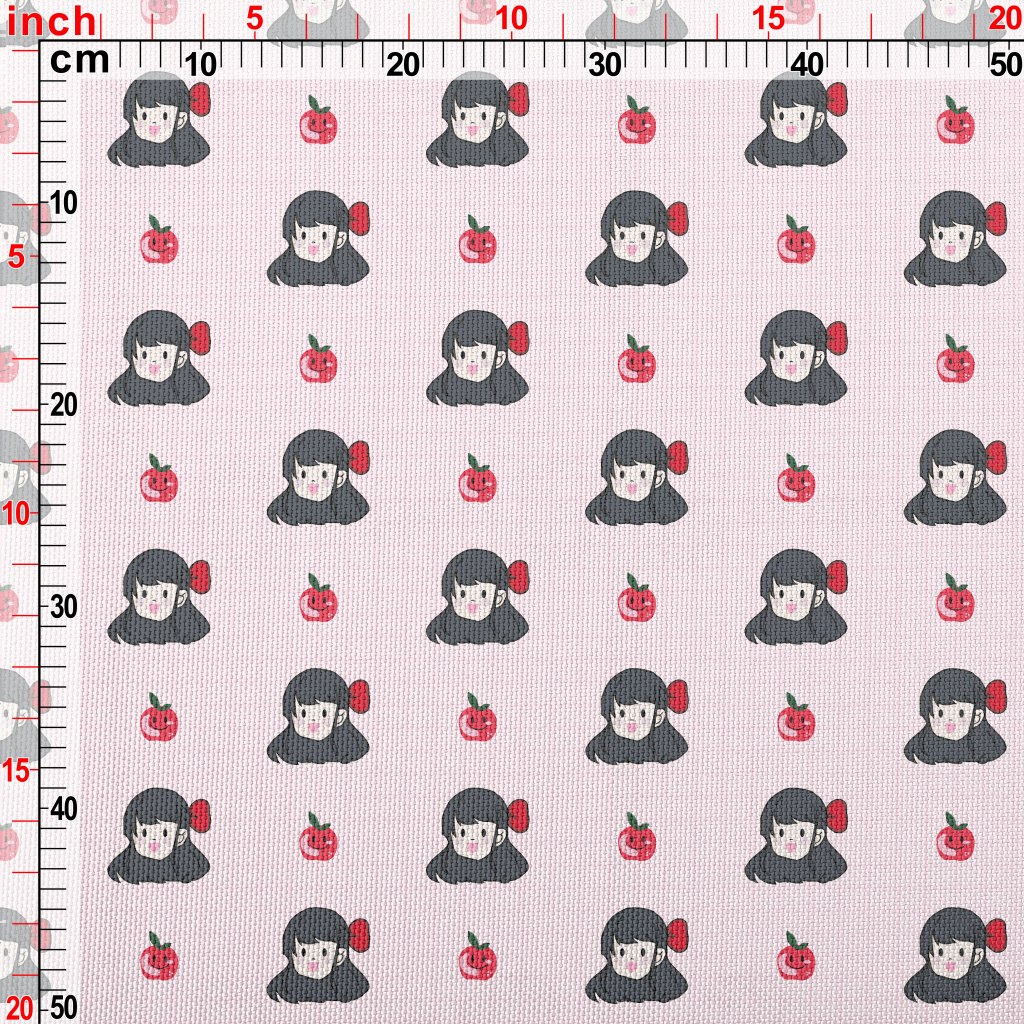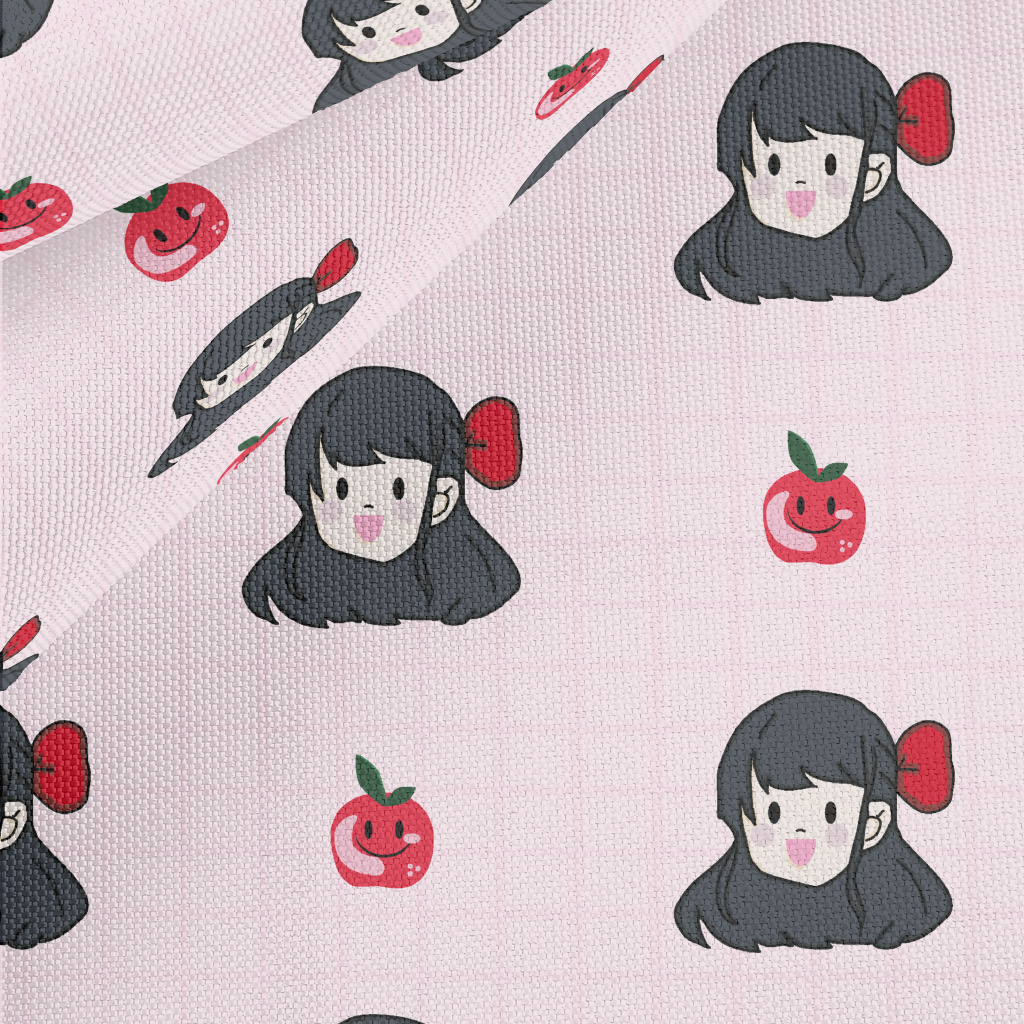 漫畫女孩與蘋果牛津布(幅寬150公分)