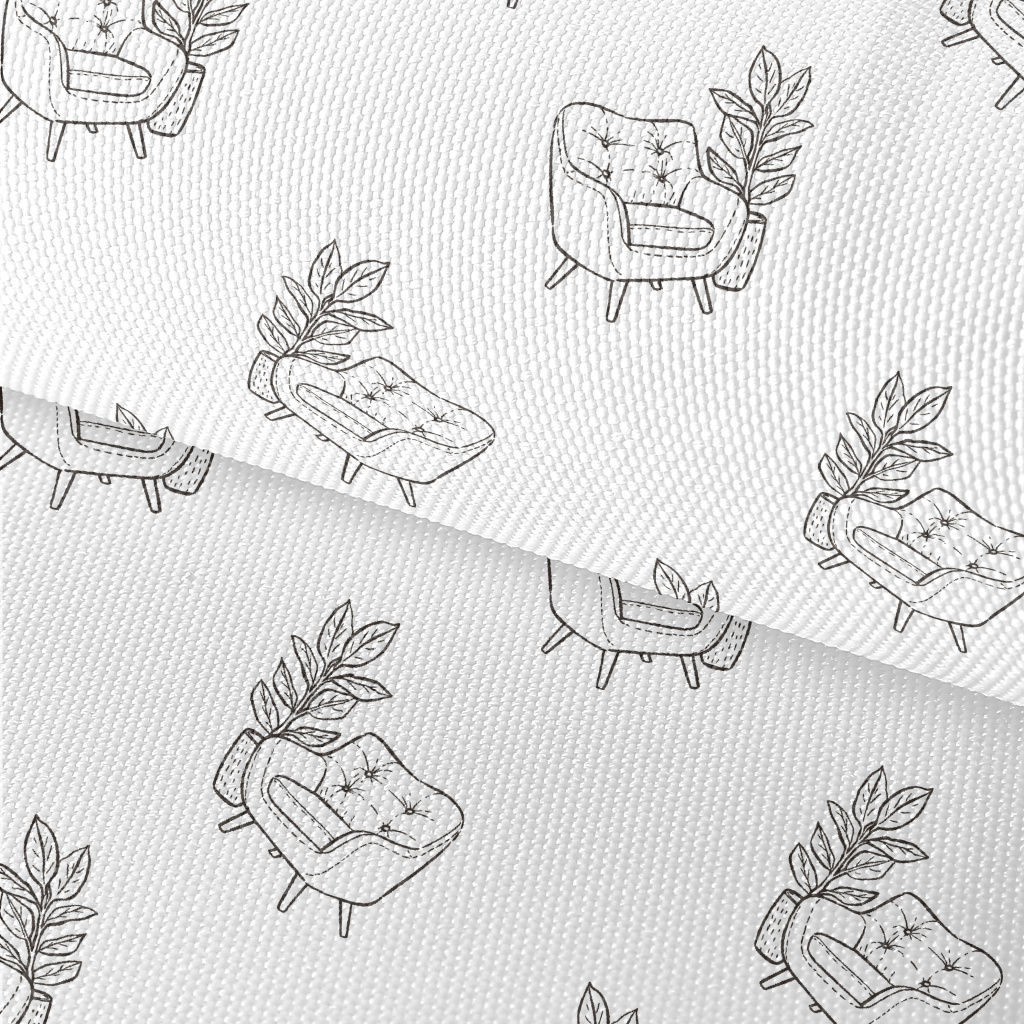手繪沙發與盆栽牛津布(幅寬150公分)