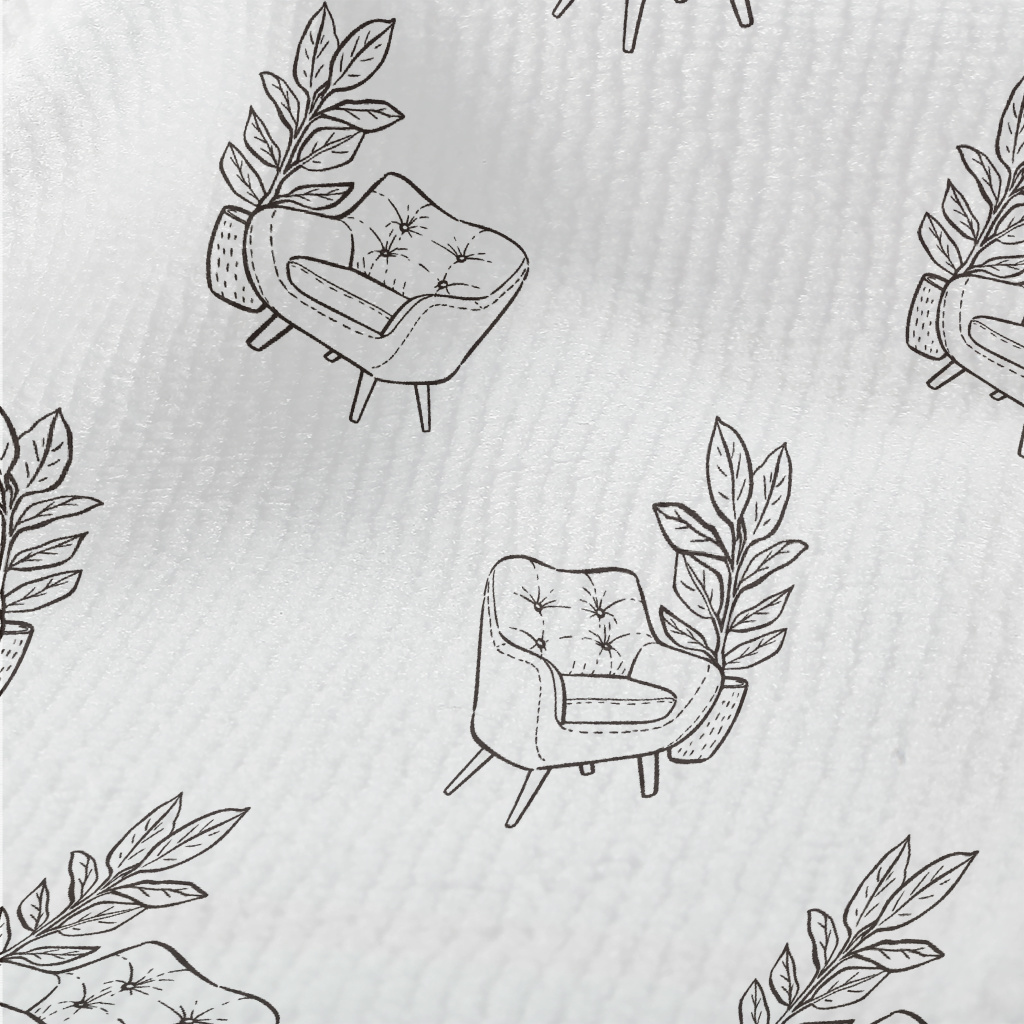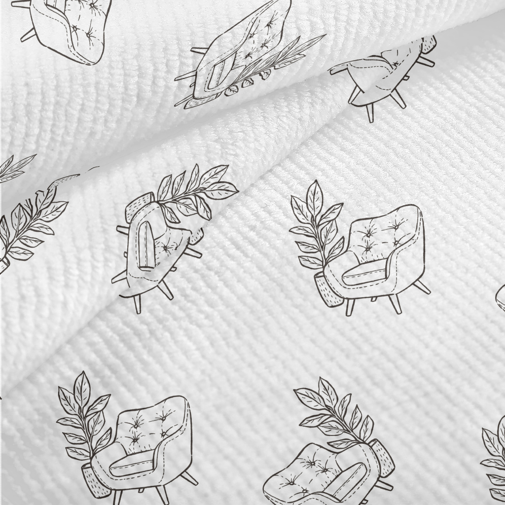 手繪沙發與盆栽毛巾布(幅寬160公分)