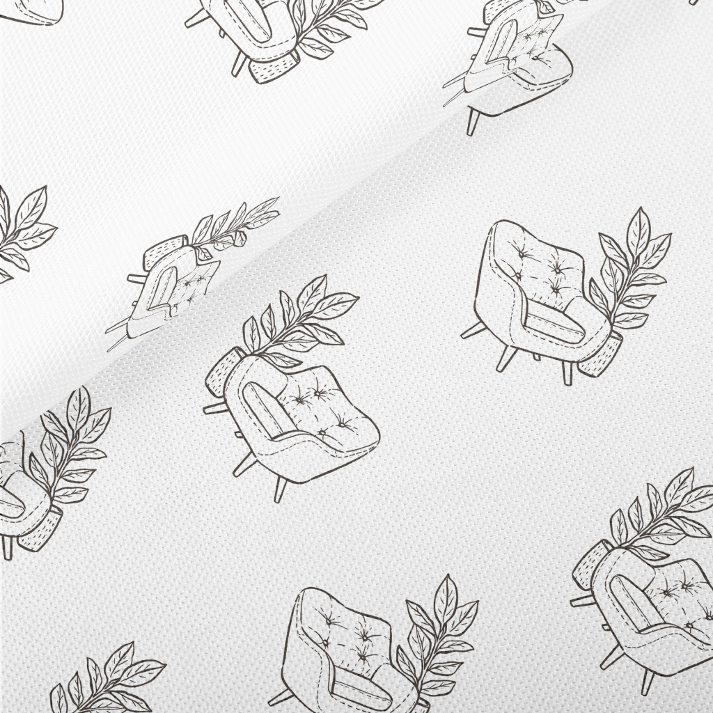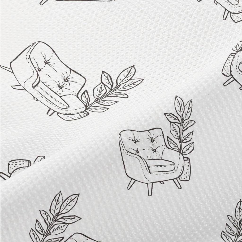手繪沙發與盆栽高爾布(幅寬180公分)