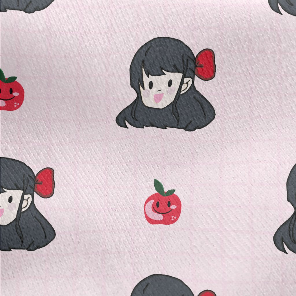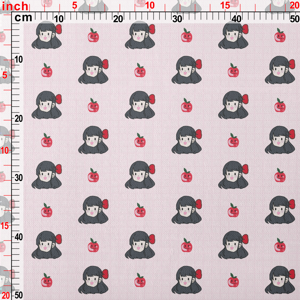 漫畫女孩與蘋果刷毛布(幅寬150公分)
