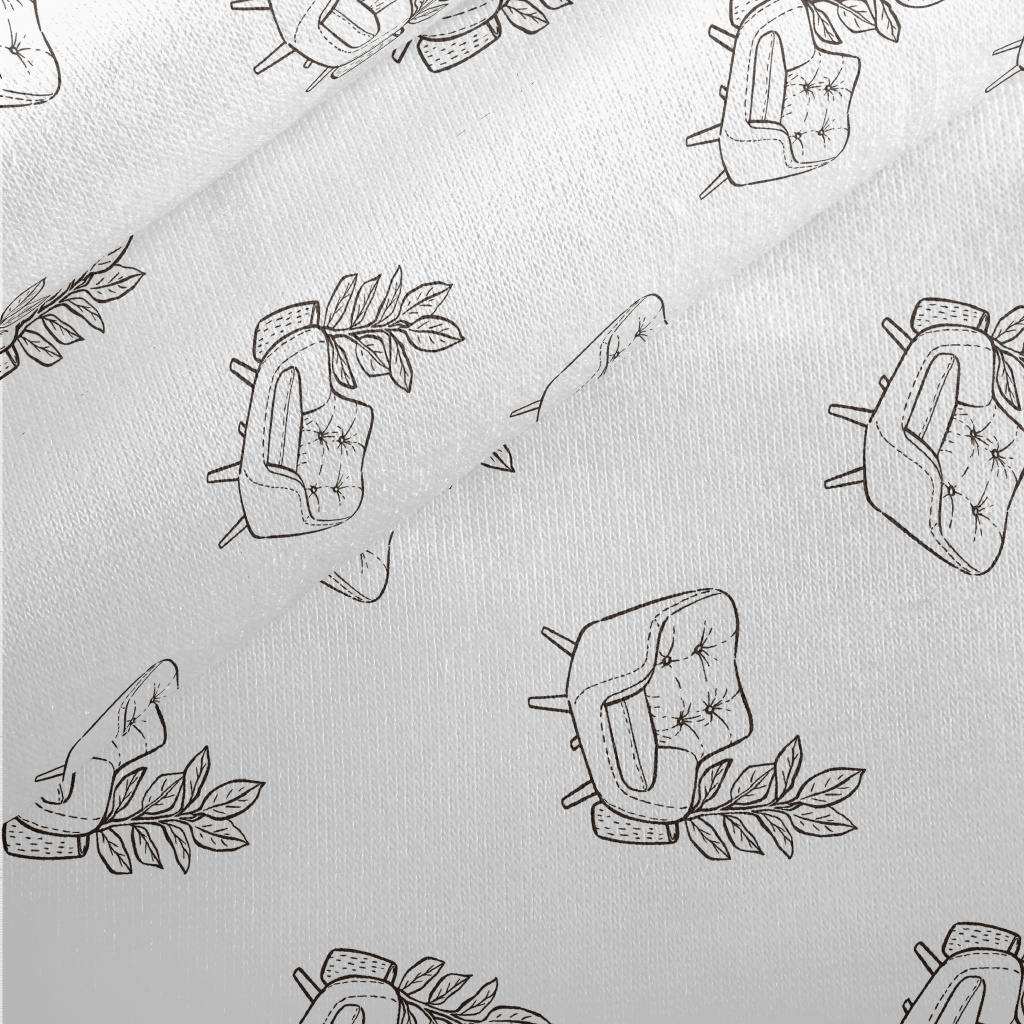 手繪沙發與盆栽刷毛布(幅寬150公分)