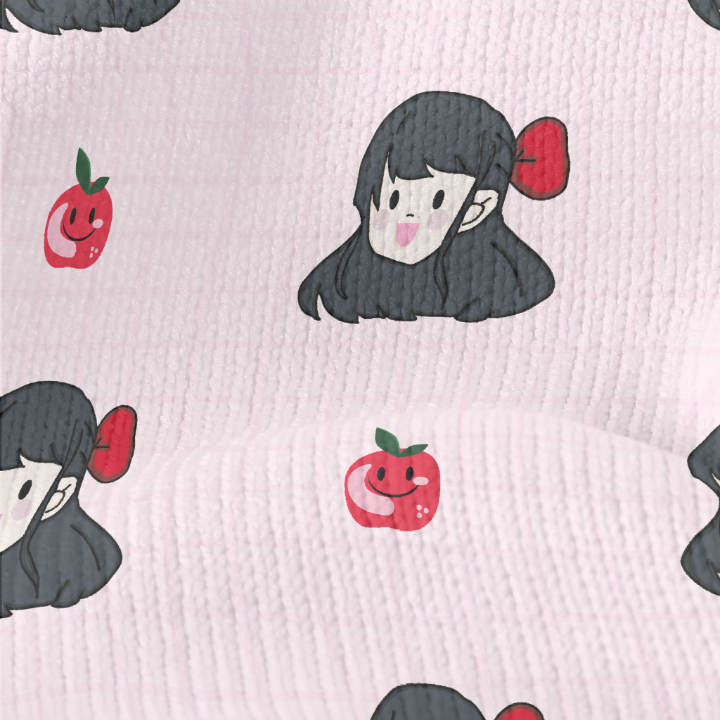 漫畫女孩與蘋果仿毛衣布(幅寬150公分)