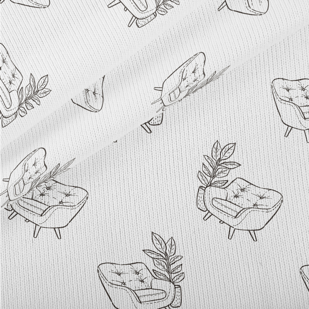 手繪沙發與盆栽仿毛衣布(幅寬150公分)