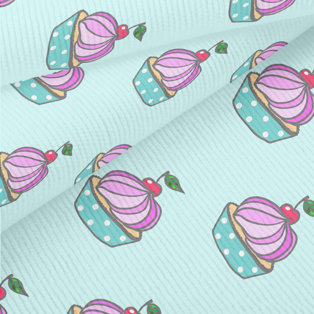 藍色櫻桃小蛋糕燈芯絨(幅寬150公分)