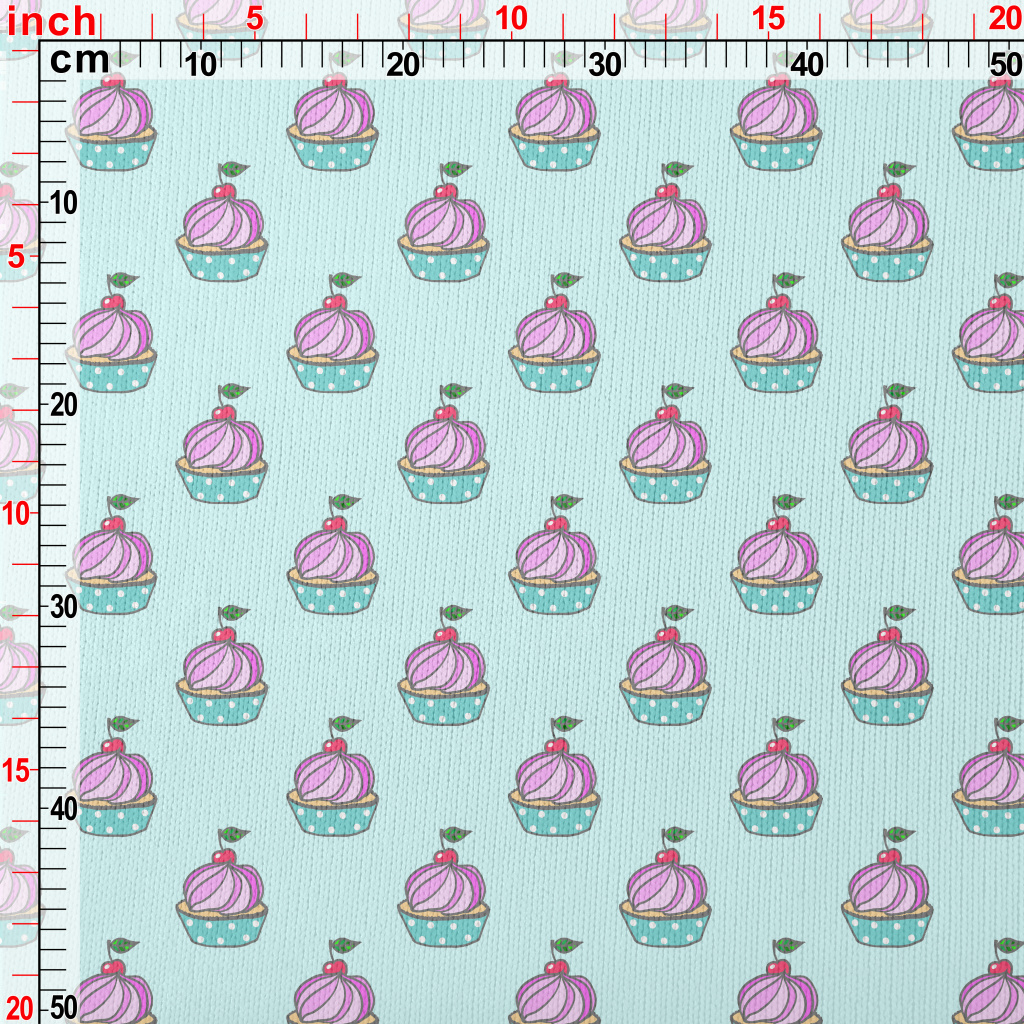 藍色櫻桃小蛋糕仿毛衣布(幅寬150公分)