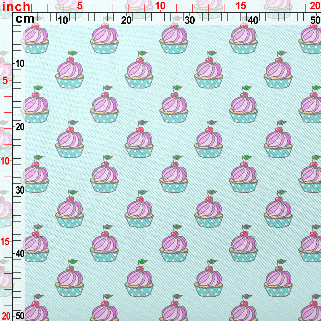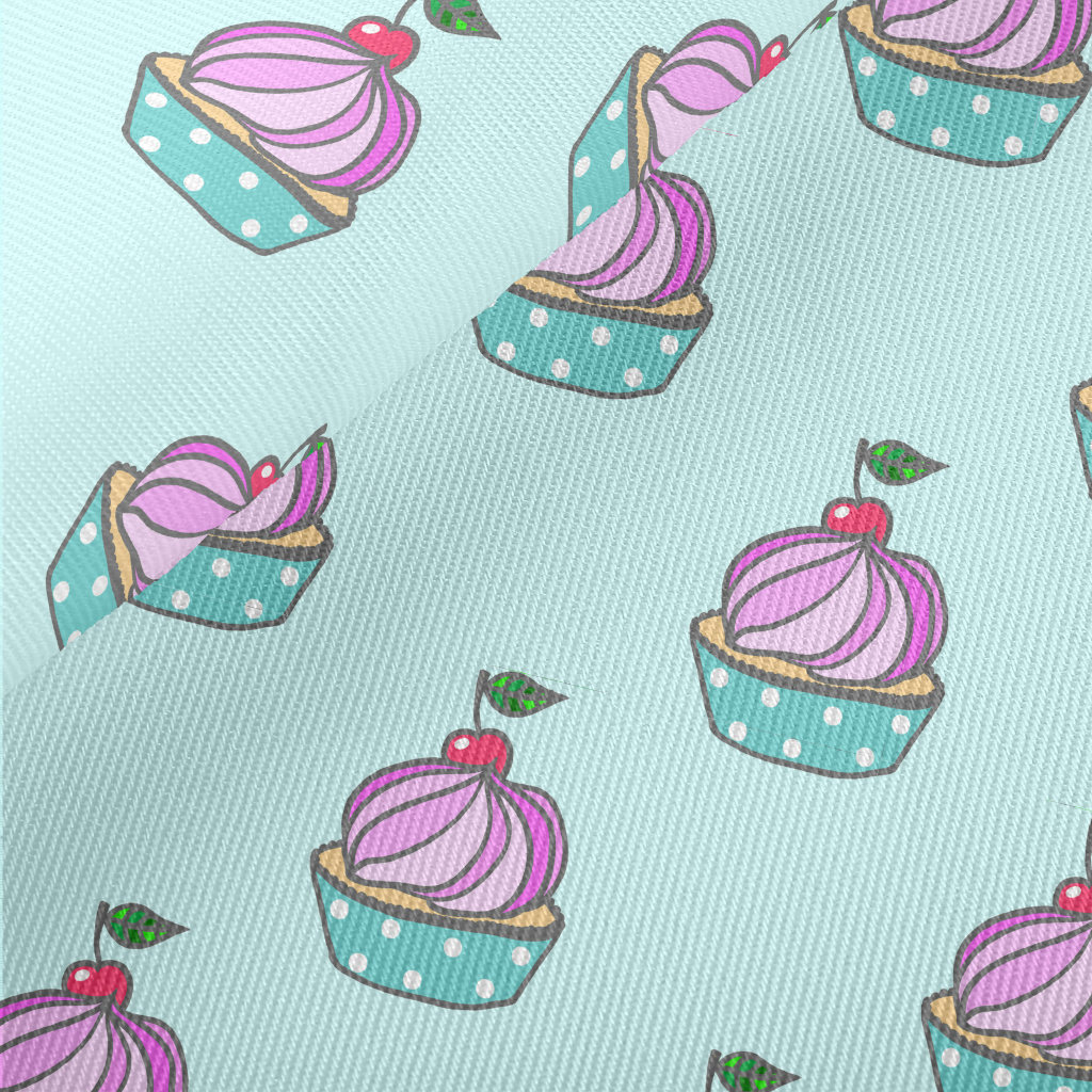 藍色櫻桃小蛋糕厚棉布(幅寬150公分)
