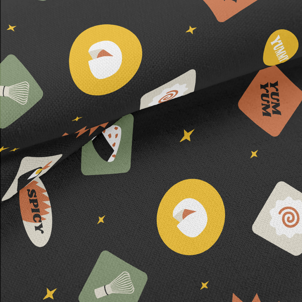 復古食物貼紙竹節麻(幅寬150公分)