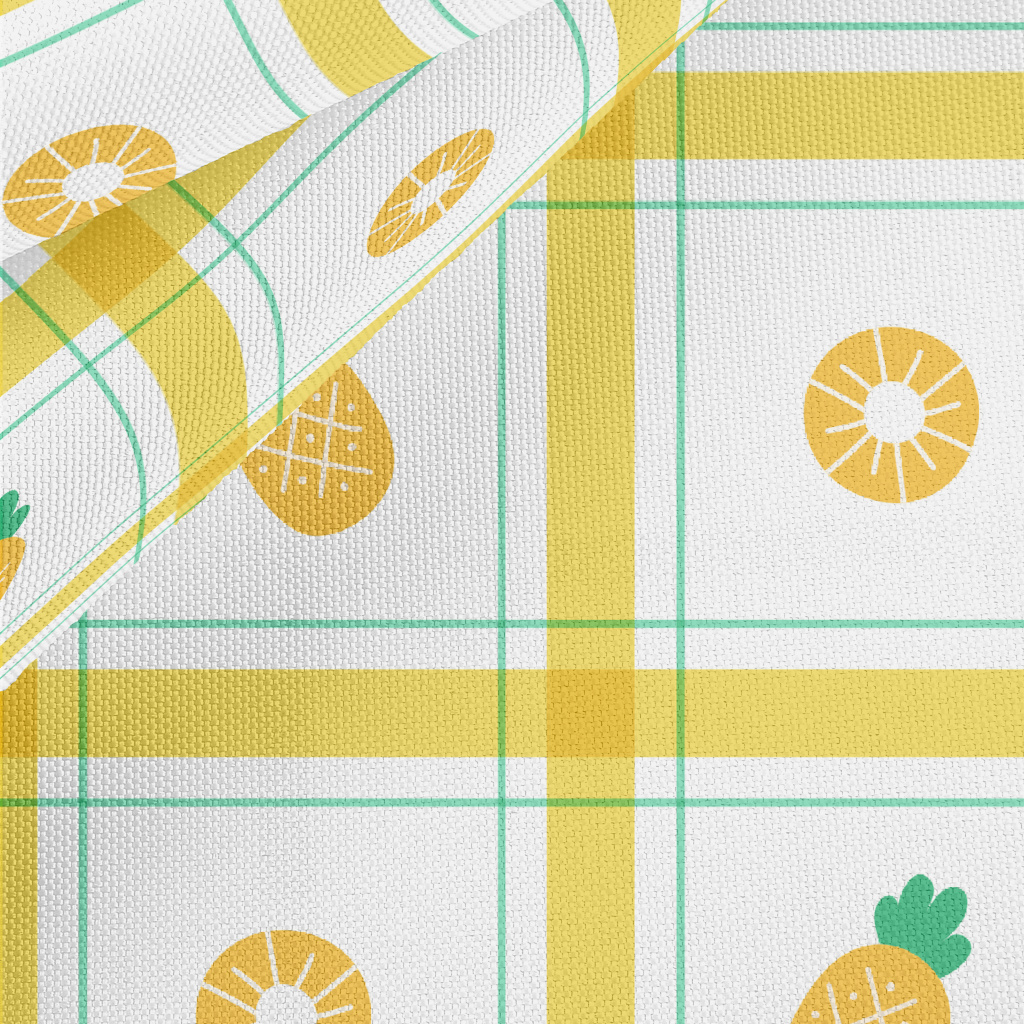 可愛鳳梨與格子牛津布(幅寬150公分)