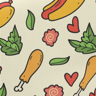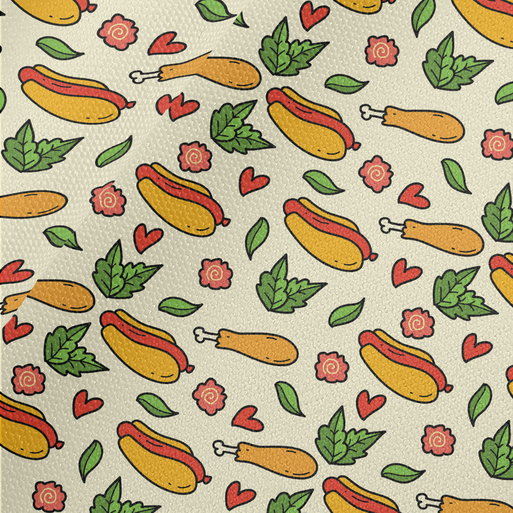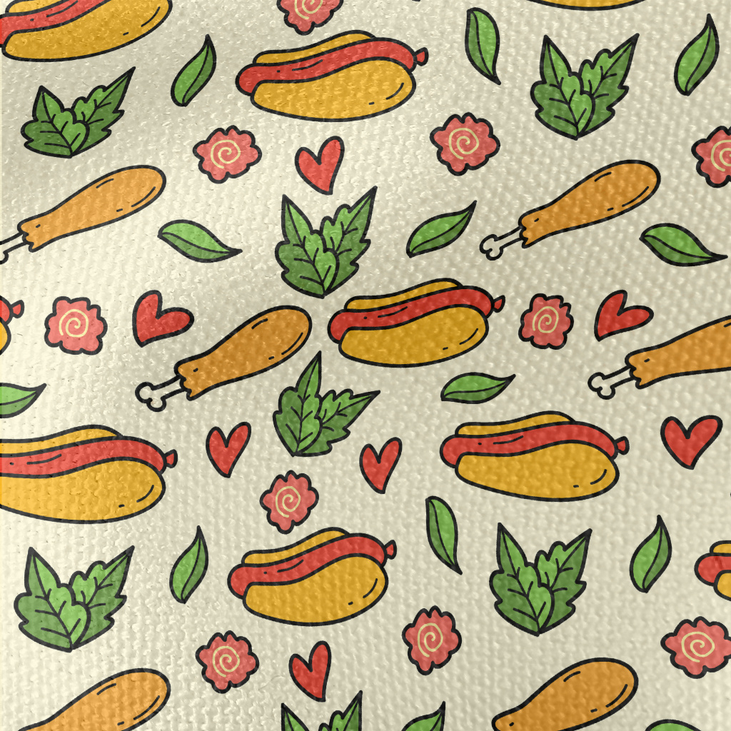 手繪卡通熱狗堡帆布(幅寬150公分)