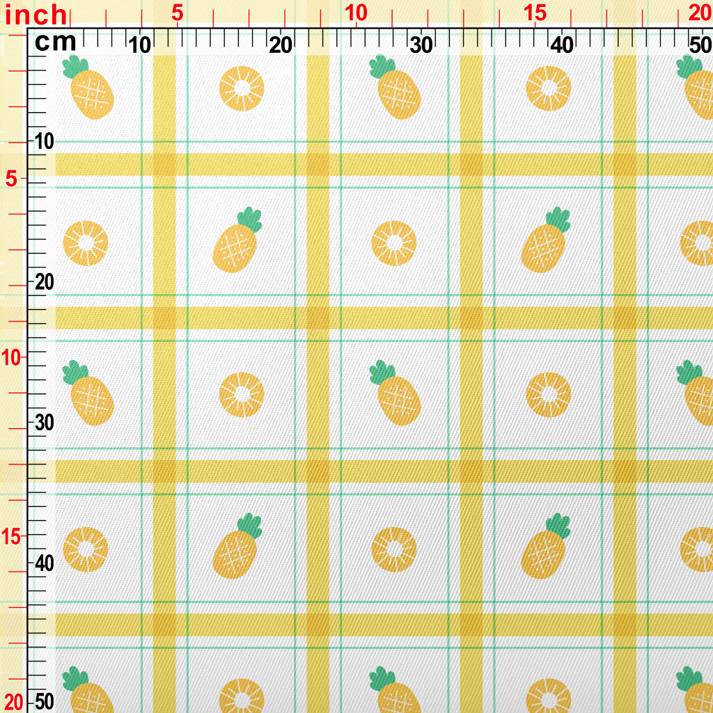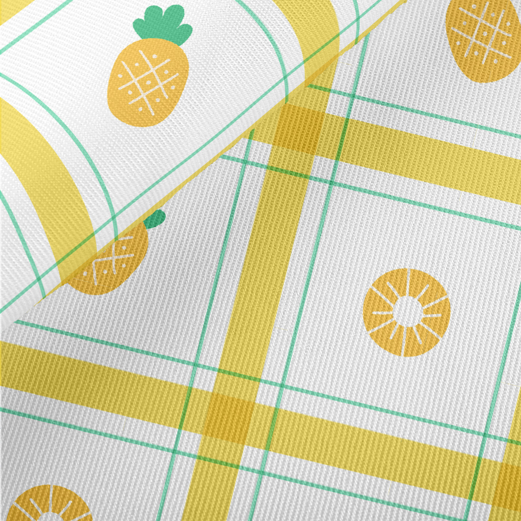 可愛鳳梨與格子斜紋布(幅寬150公分)