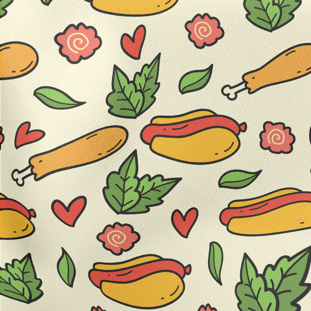 手繪卡通熱狗堡羅馬布(幅寬160公分)