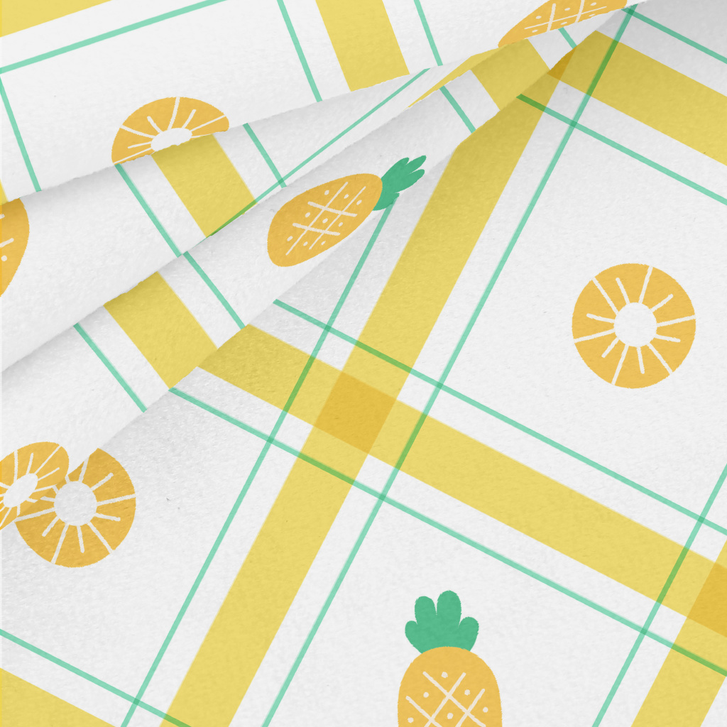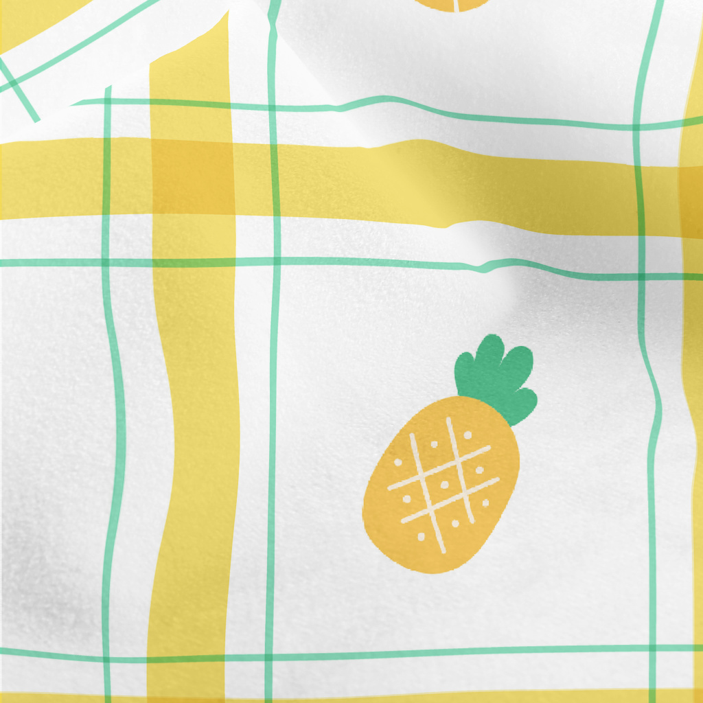 可愛鳳梨與格子水晶絨(幅寬160公分)