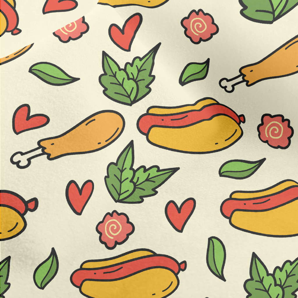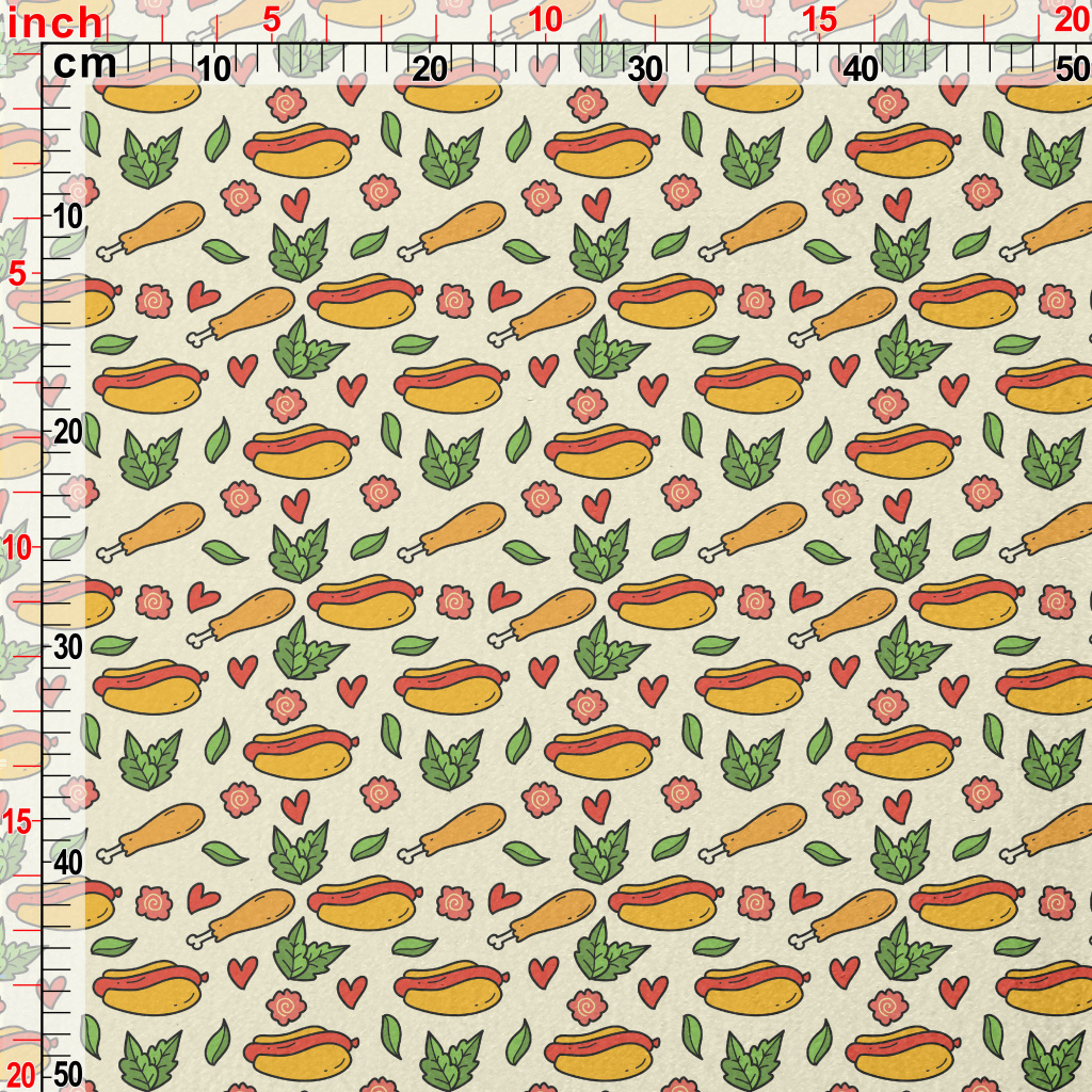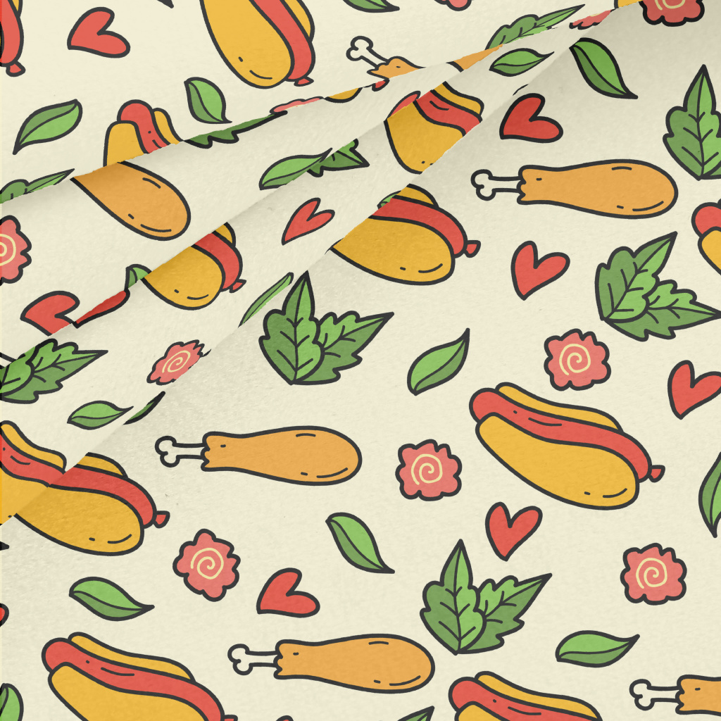 手繪卡通熱狗堡水晶絨(幅寬160公分)