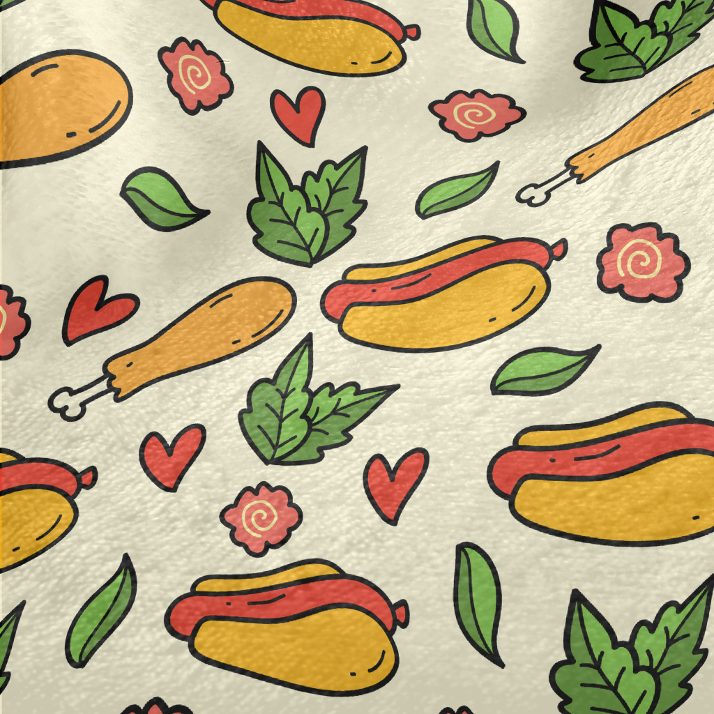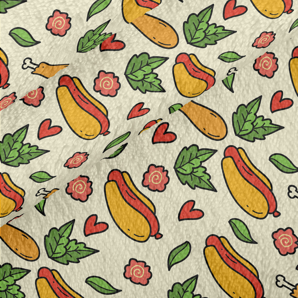 手繪卡通熱狗堡法蘭絨(幅寬150公分)