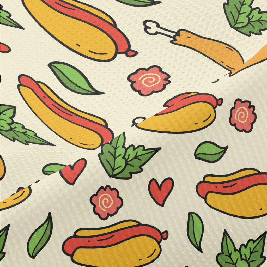 手繪卡通熱狗堡高爾布(幅寬180公分)