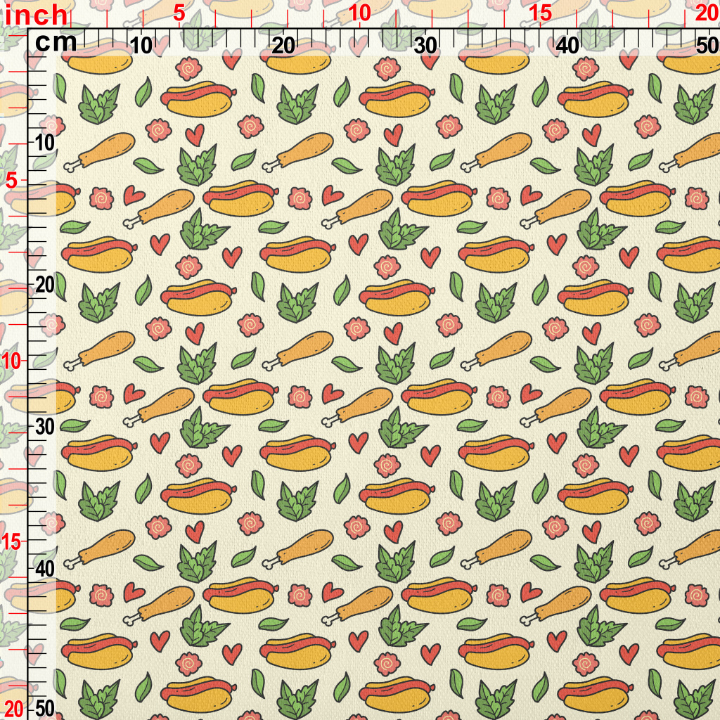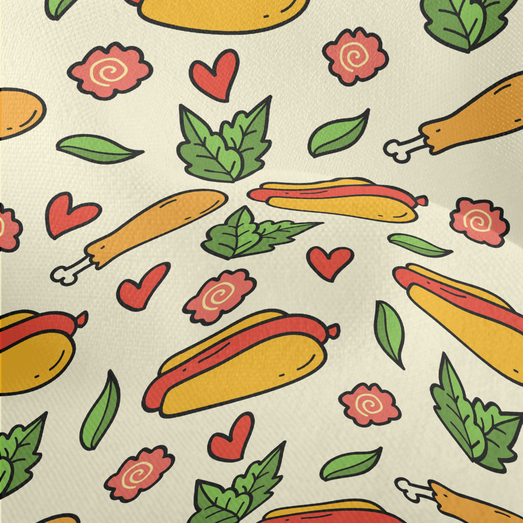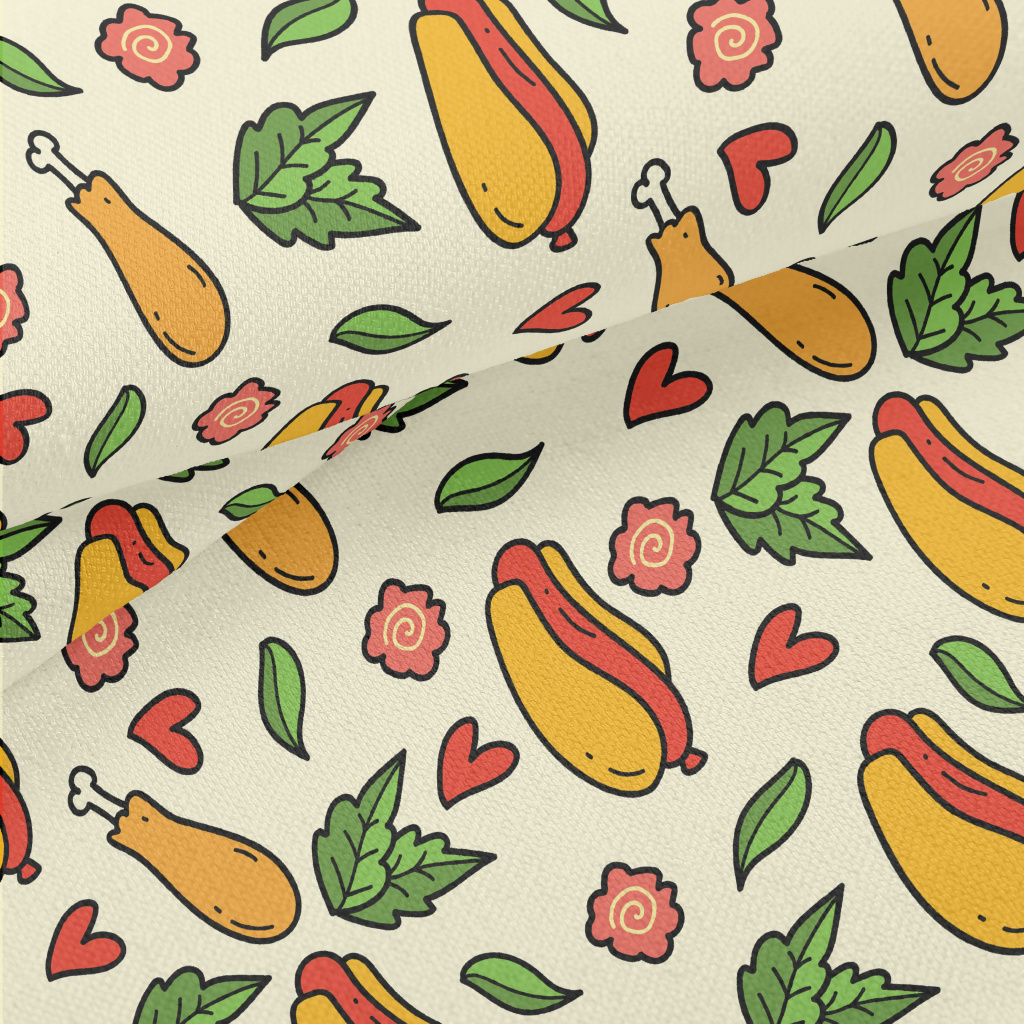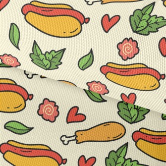 手繪卡通熱狗堡竹節麻(幅寬150公分)
