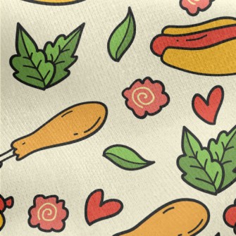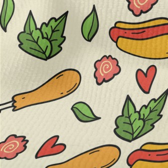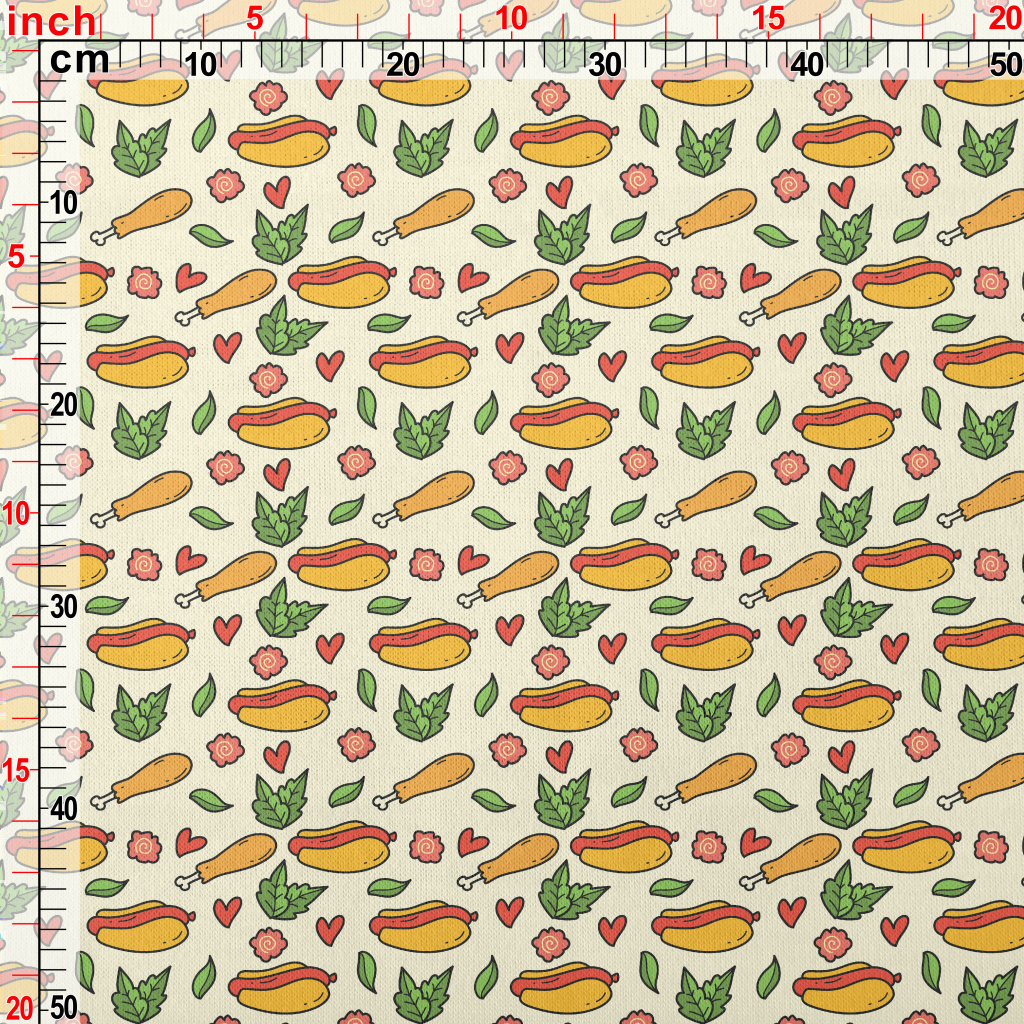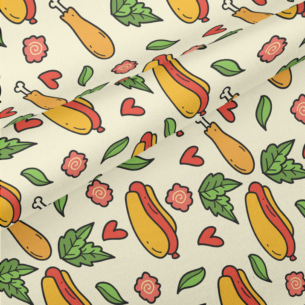 手繪卡通熱狗堡仿棉布(幅寬150公分)