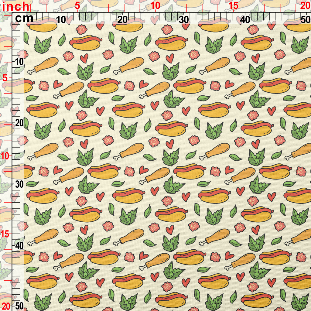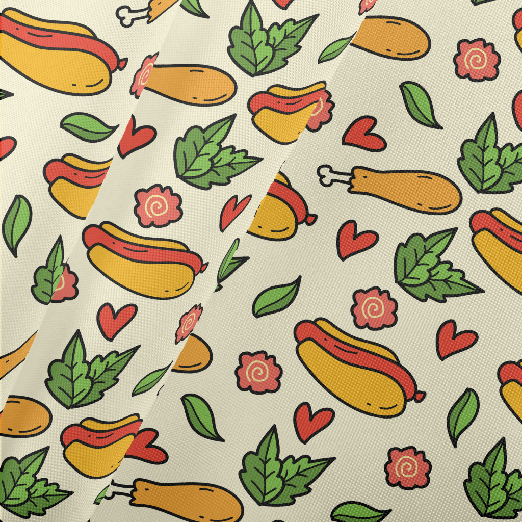 手繪卡通熱狗堡春亞紡(幅寬160公分)