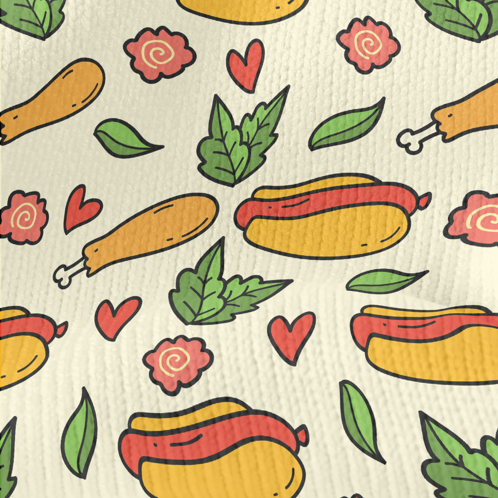 手繪卡通熱狗堡仿毛衣布(幅寬150公分)
