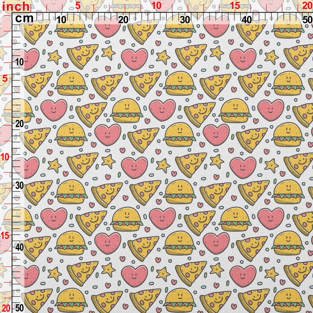 卡通披薩與漢堡雪紡布(幅寬150公分)