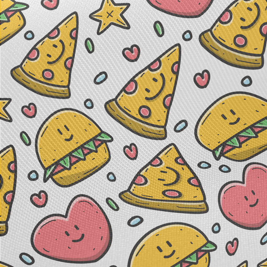 卡通披薩與漢堡厚棉布(幅寬150公分)