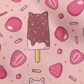 貓咪草莓冰棒斜紋布(幅寬150公分)
