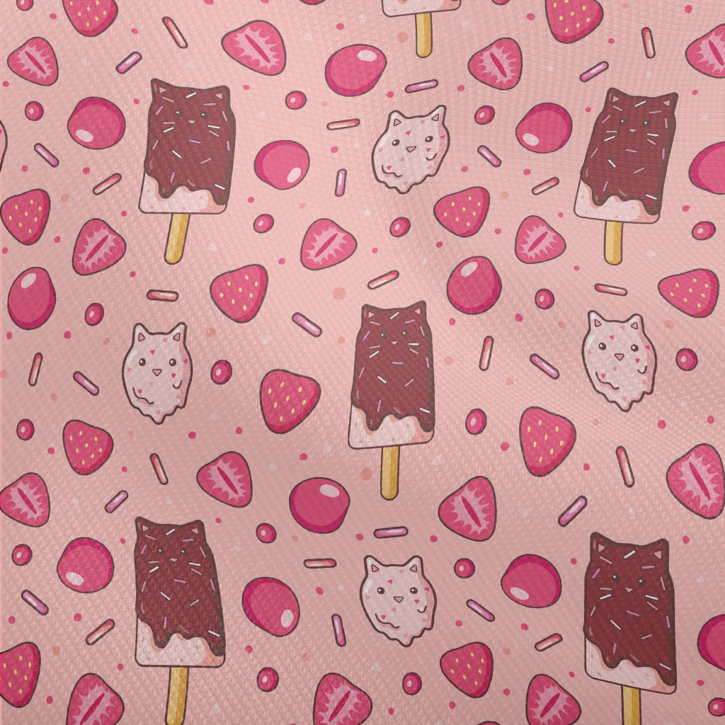 貓咪草莓冰棒雙斜布(幅寬150公分)