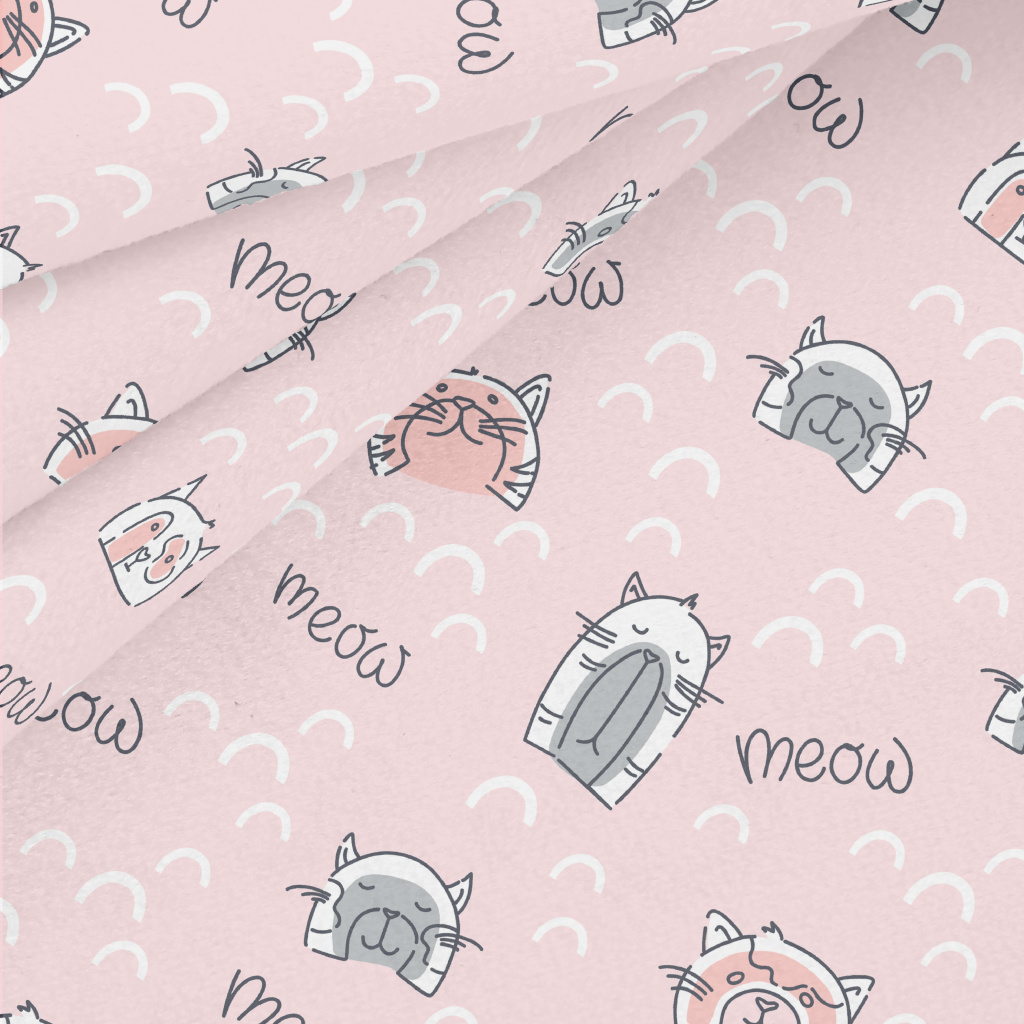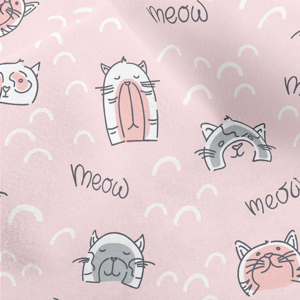 逗趣貓咪插畫水晶絨(幅寬160公分)