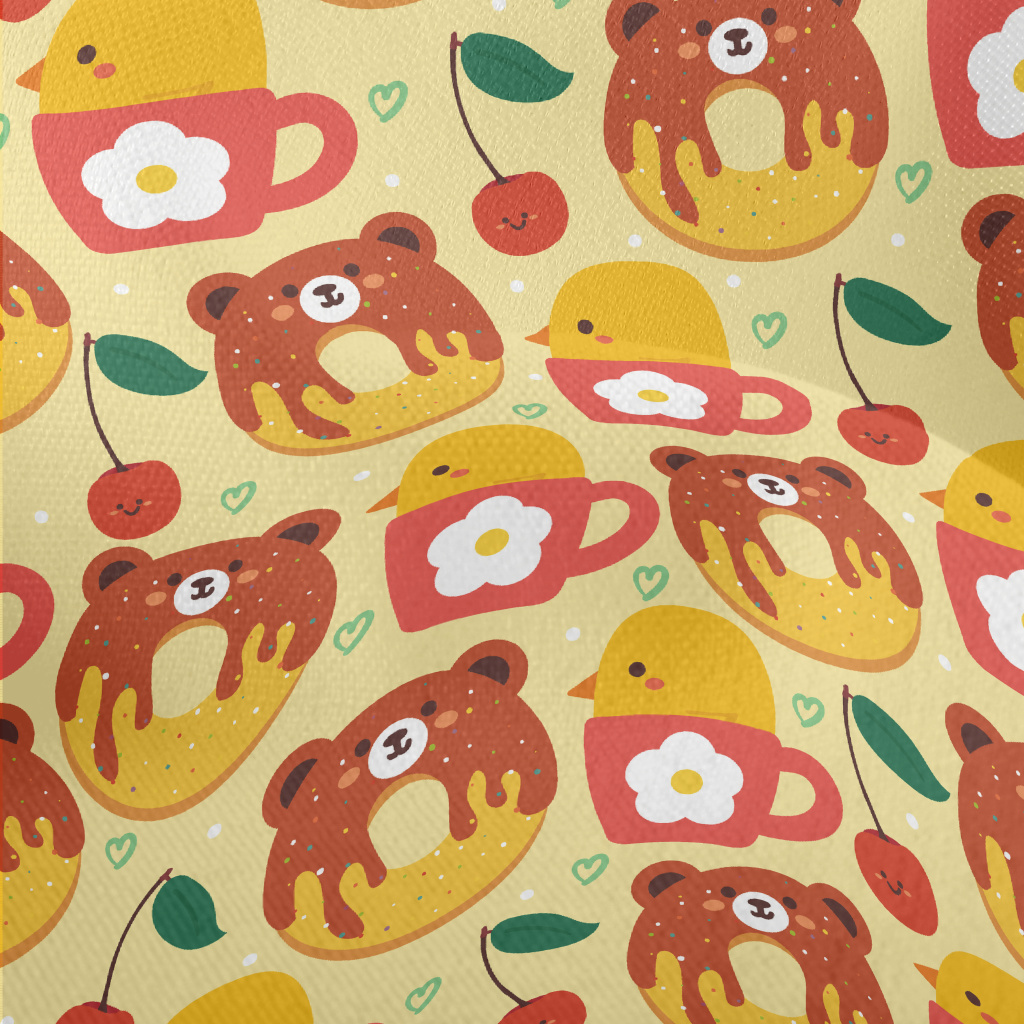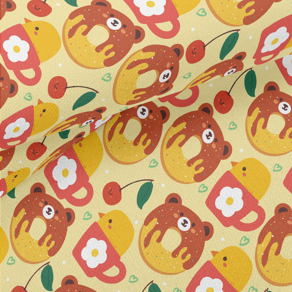 小熊造型甜甜圈竹節麻(幅寬150公分)
