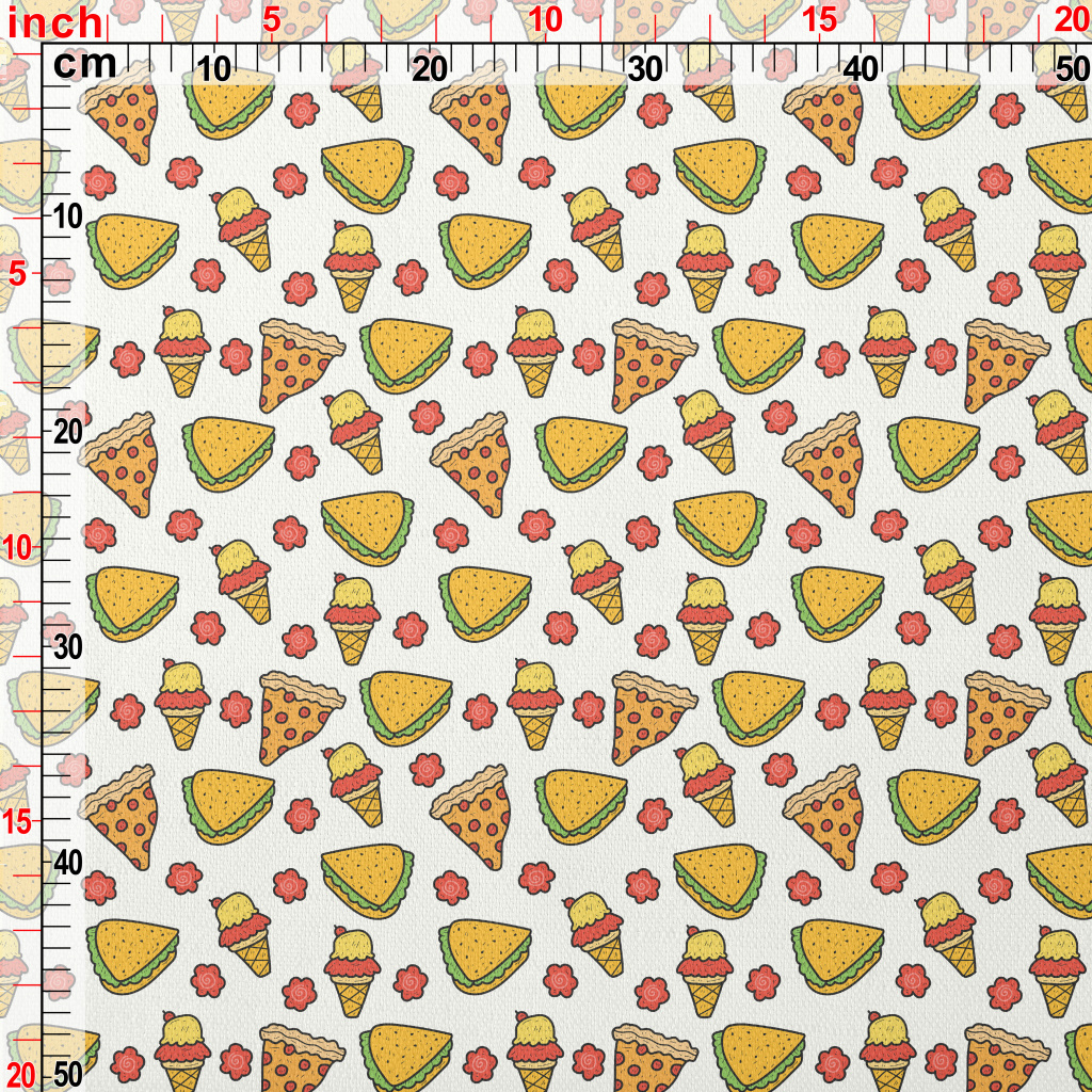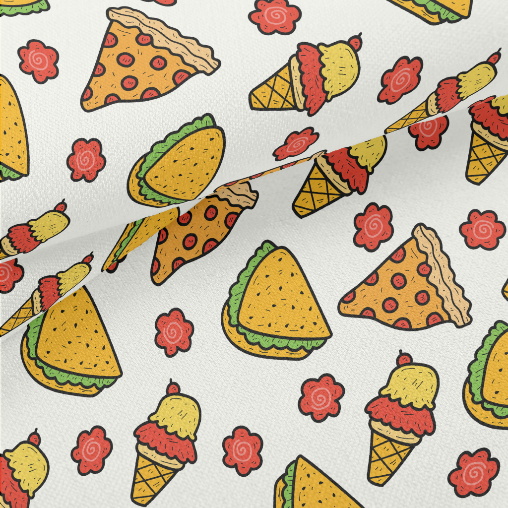 手繪三明治與披薩竹節麻(幅寬150公分)