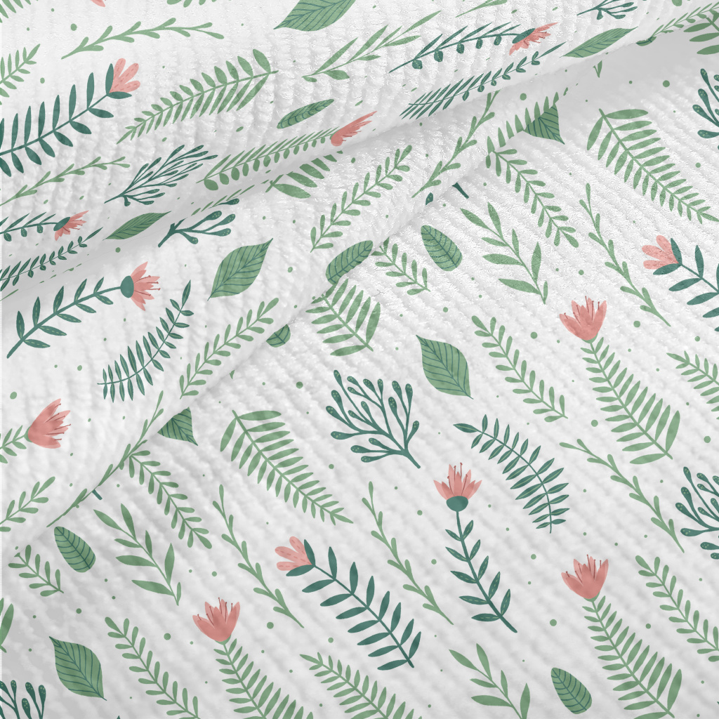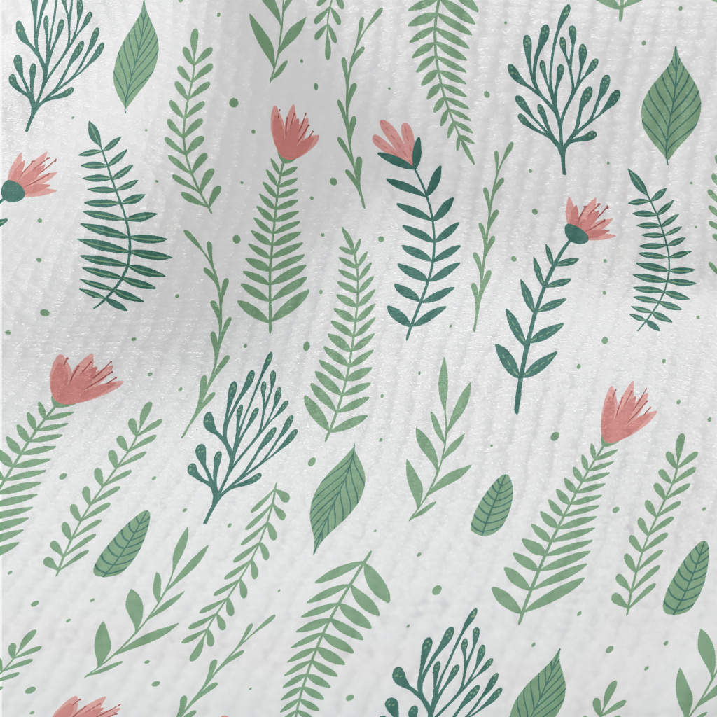粉色花朵與綠葉毛巾布(幅寬160公分)