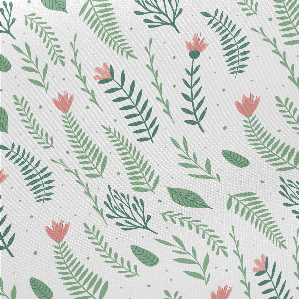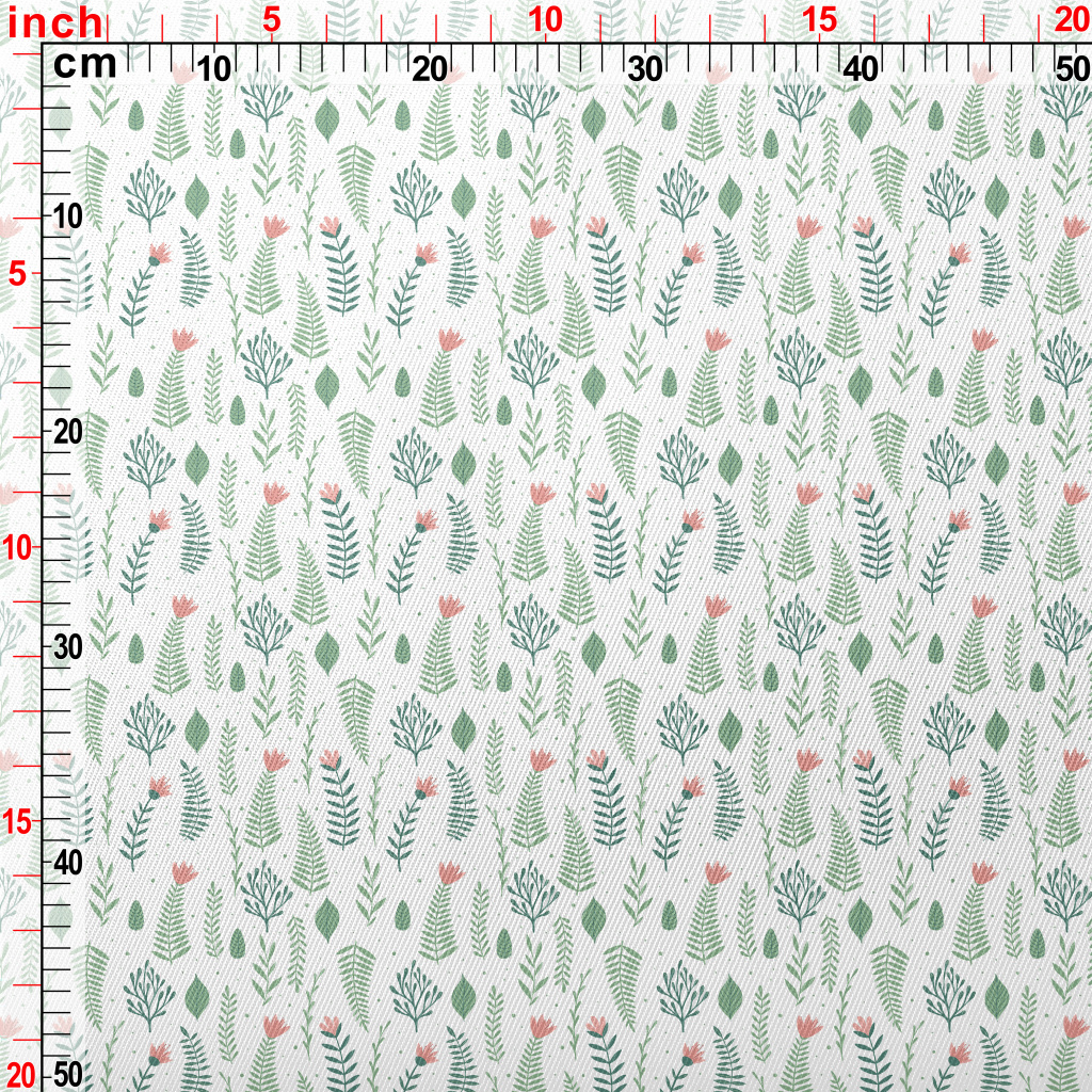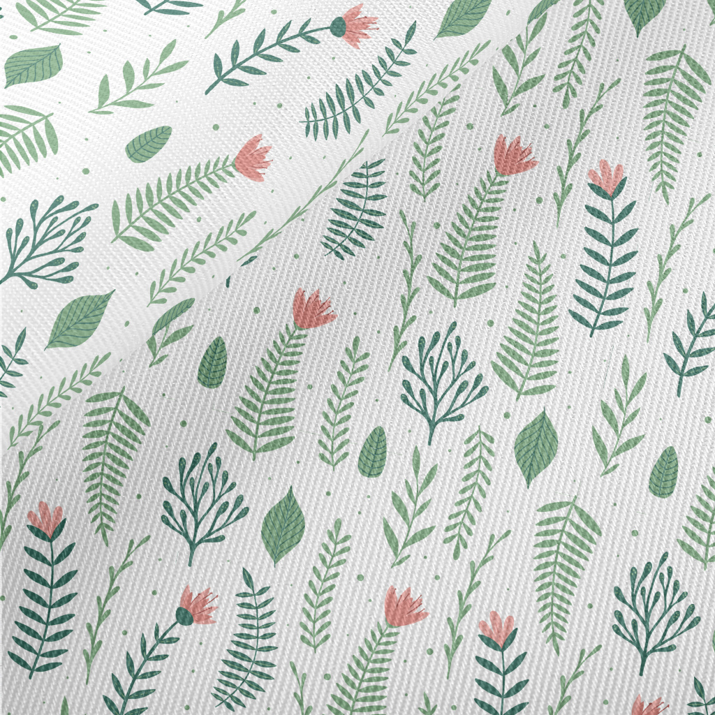 粉色花朵與綠葉斜紋布(幅寬150公分)