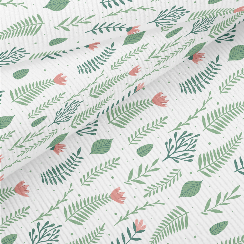 粉色花朵與綠葉燈芯絨(幅寬150公分)