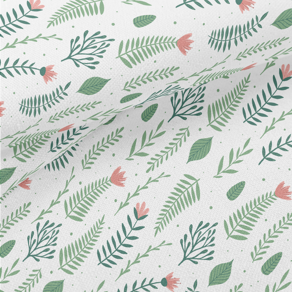粉色花朵與綠葉竹節麻(幅寬150公分)