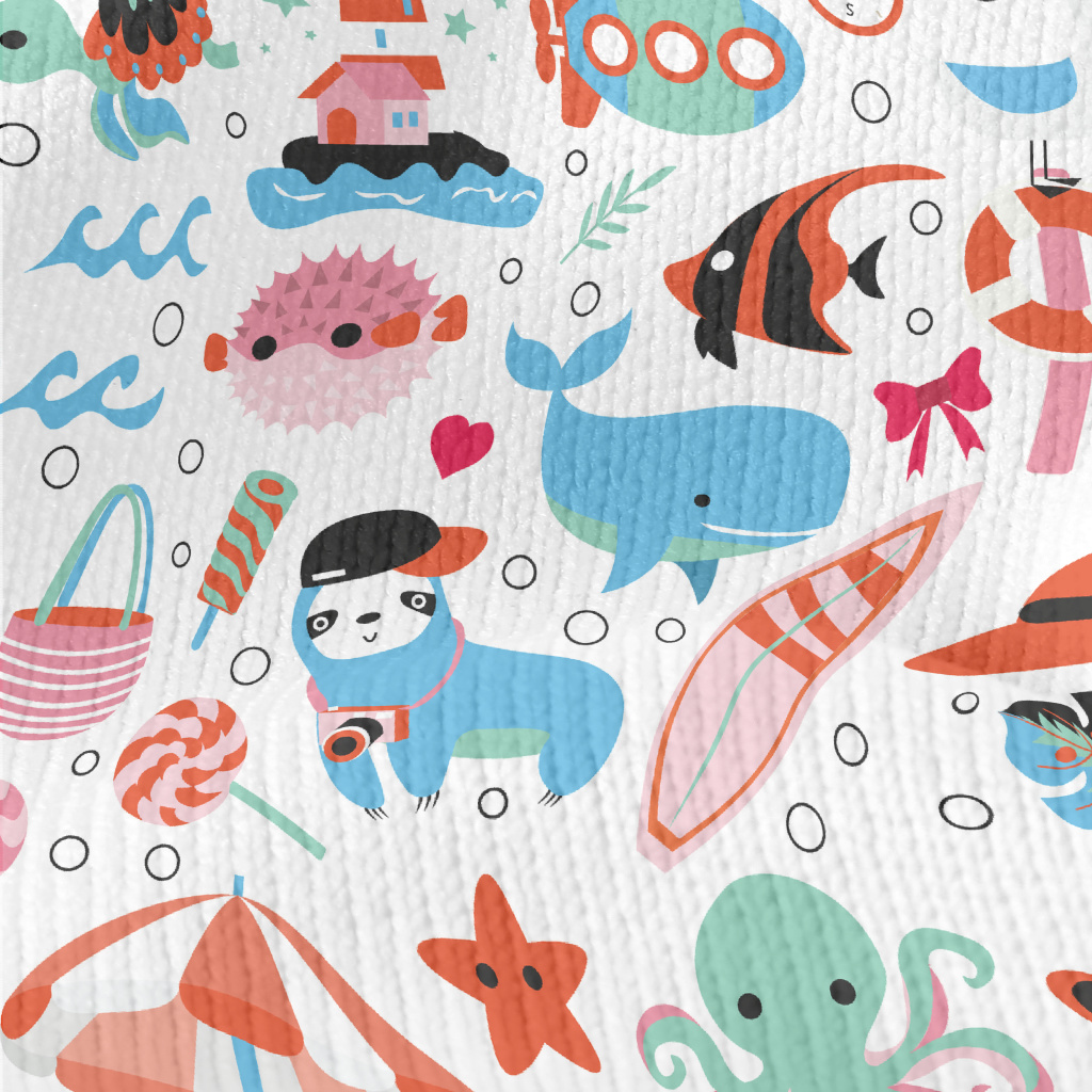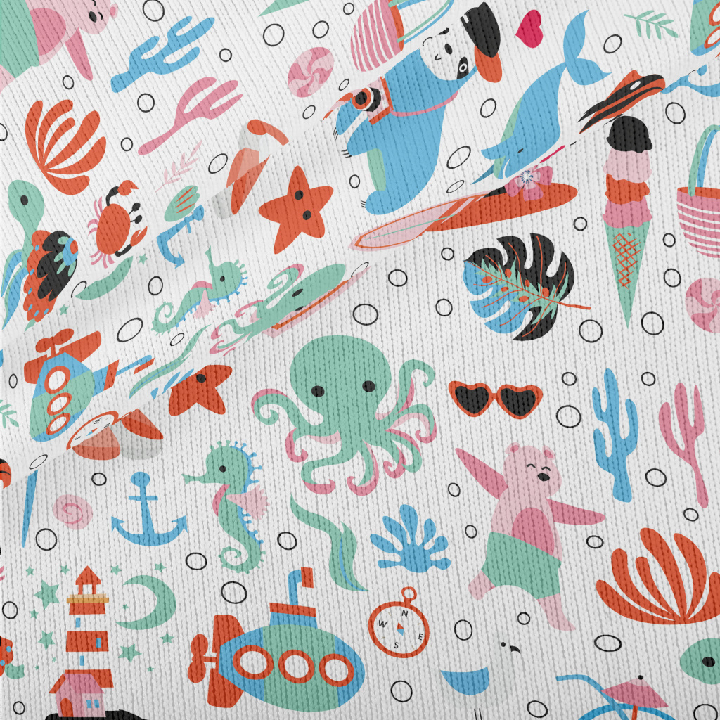 夏日海洋動物仿毛衣布(幅寬150公分)
