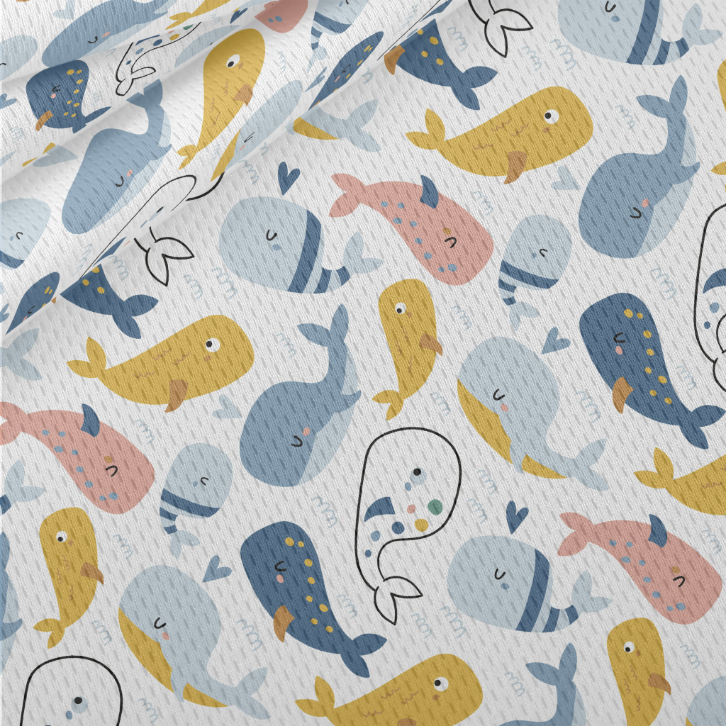 塗鴉彩色鯨魚鳥眼布(幅寬160公分)