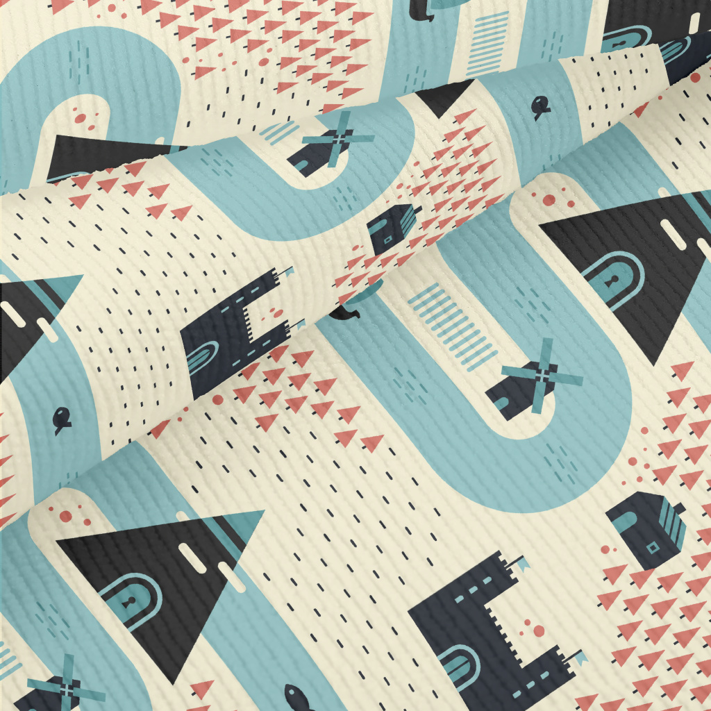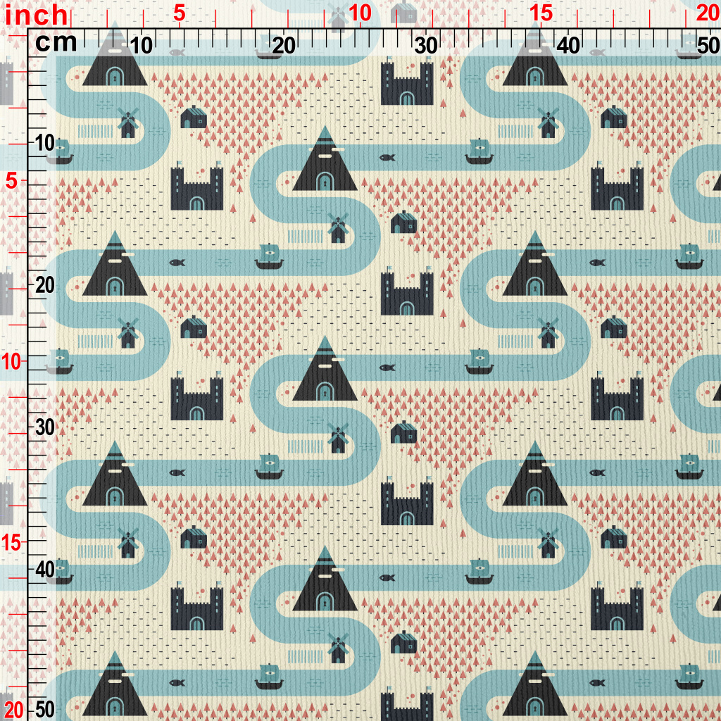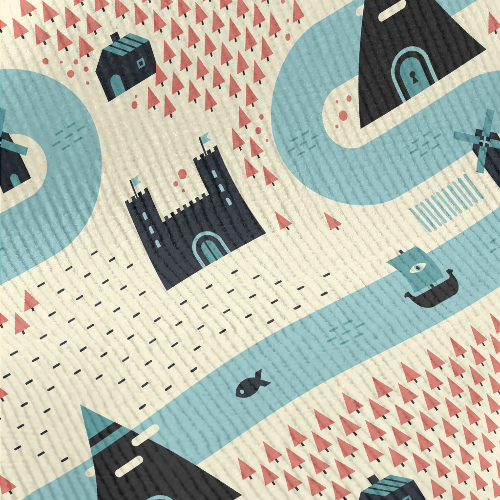 卡通中世紀村莊燈芯絨(幅寬150公分)