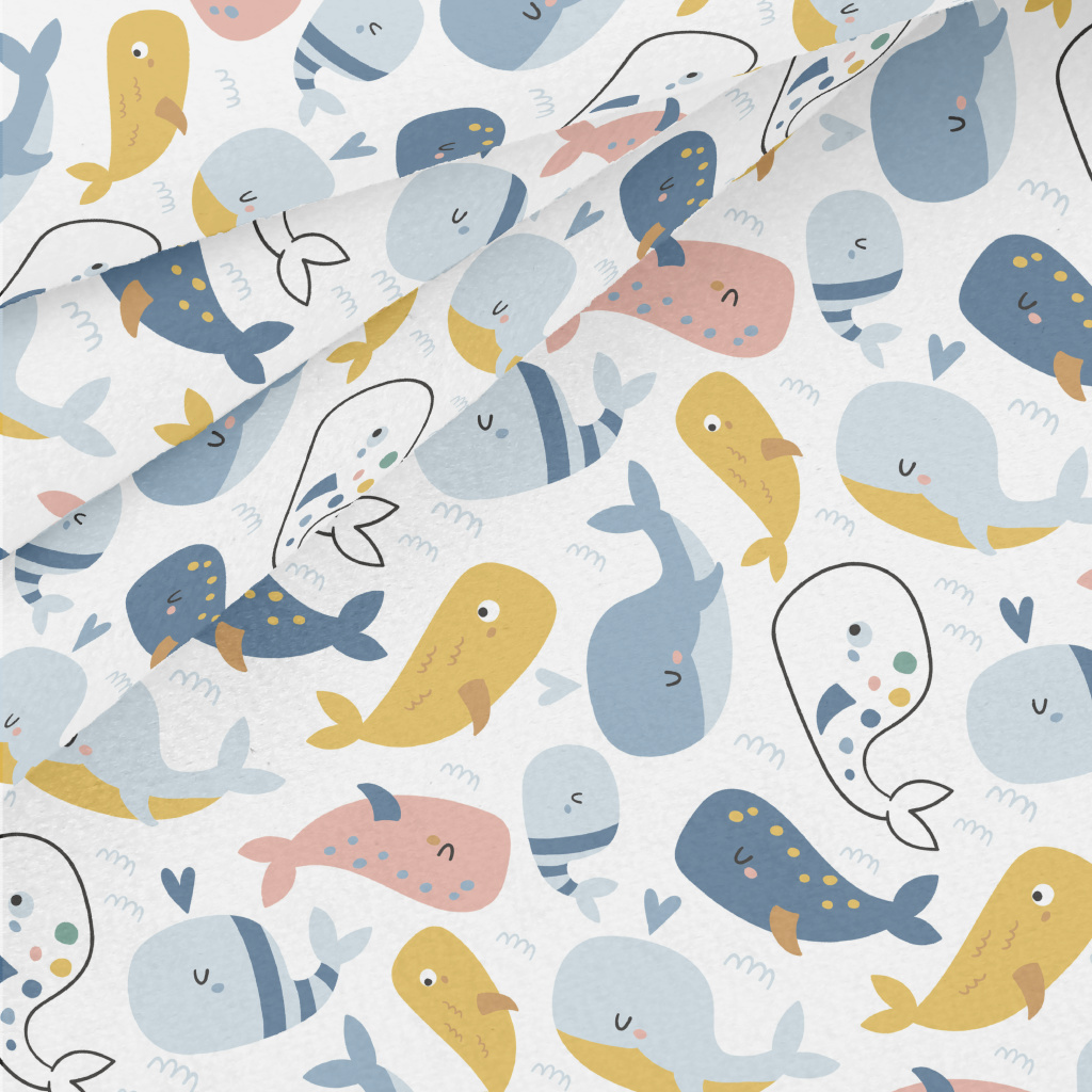 塗鴉彩色鯨魚水晶絨(幅寬160公分)