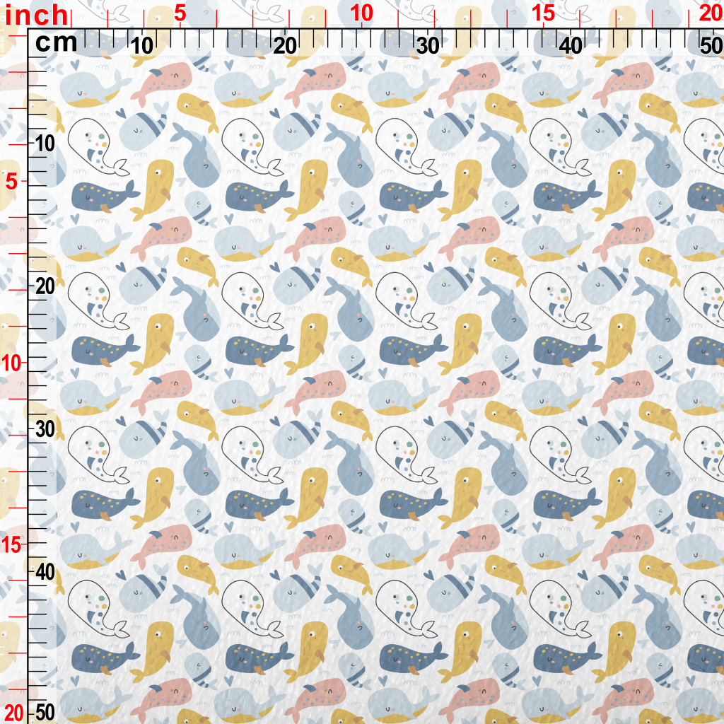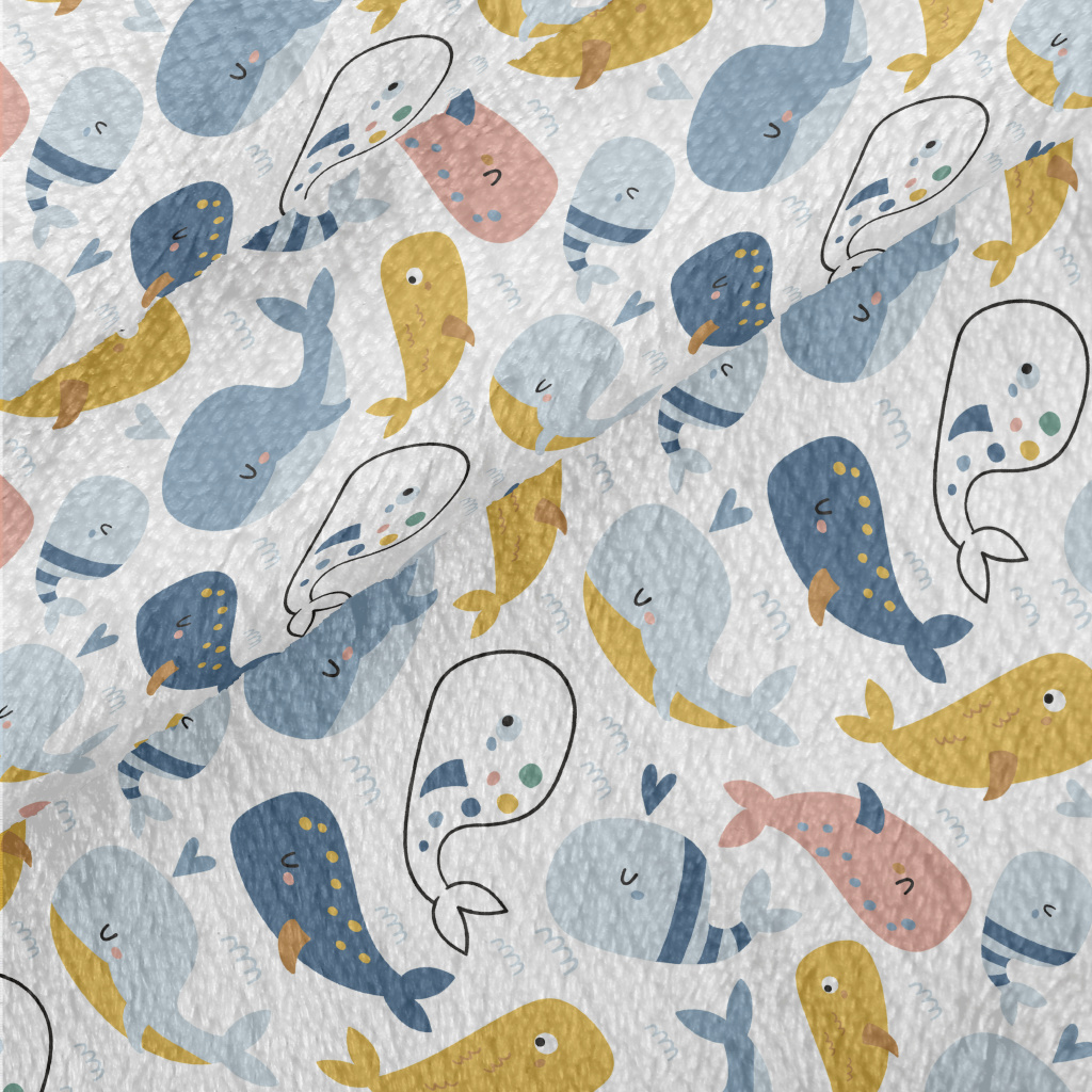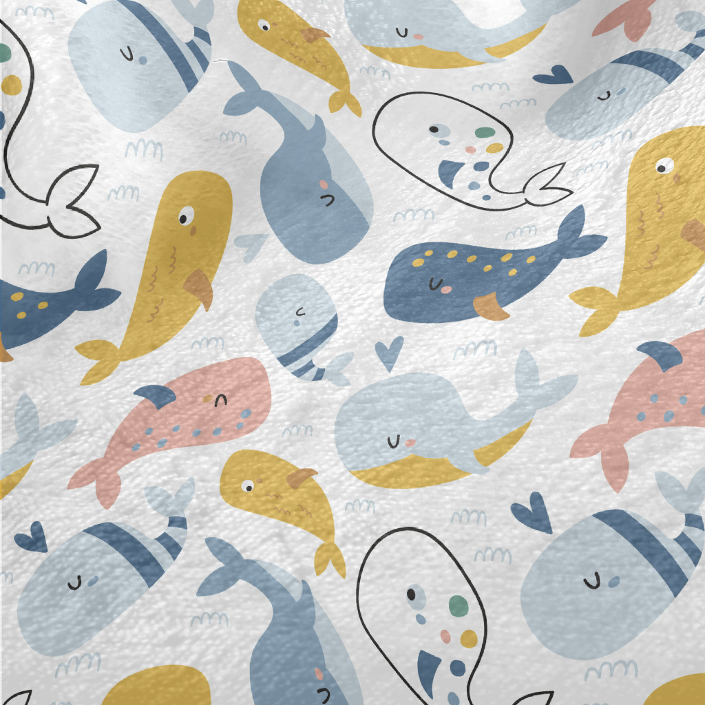 塗鴉彩色鯨魚法蘭絨(幅寬150公分)