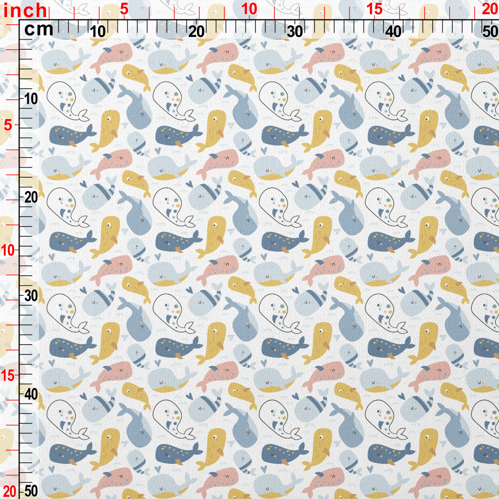 塗鴉彩色鯨魚竹節麻(幅寬150公分)