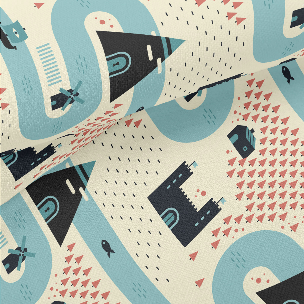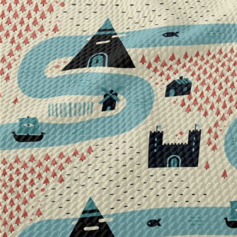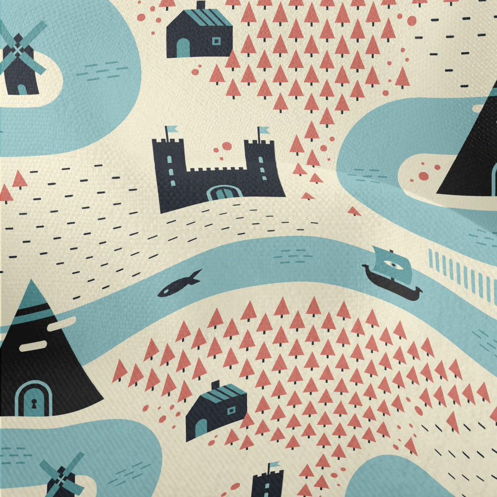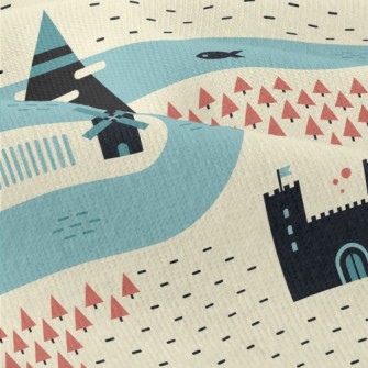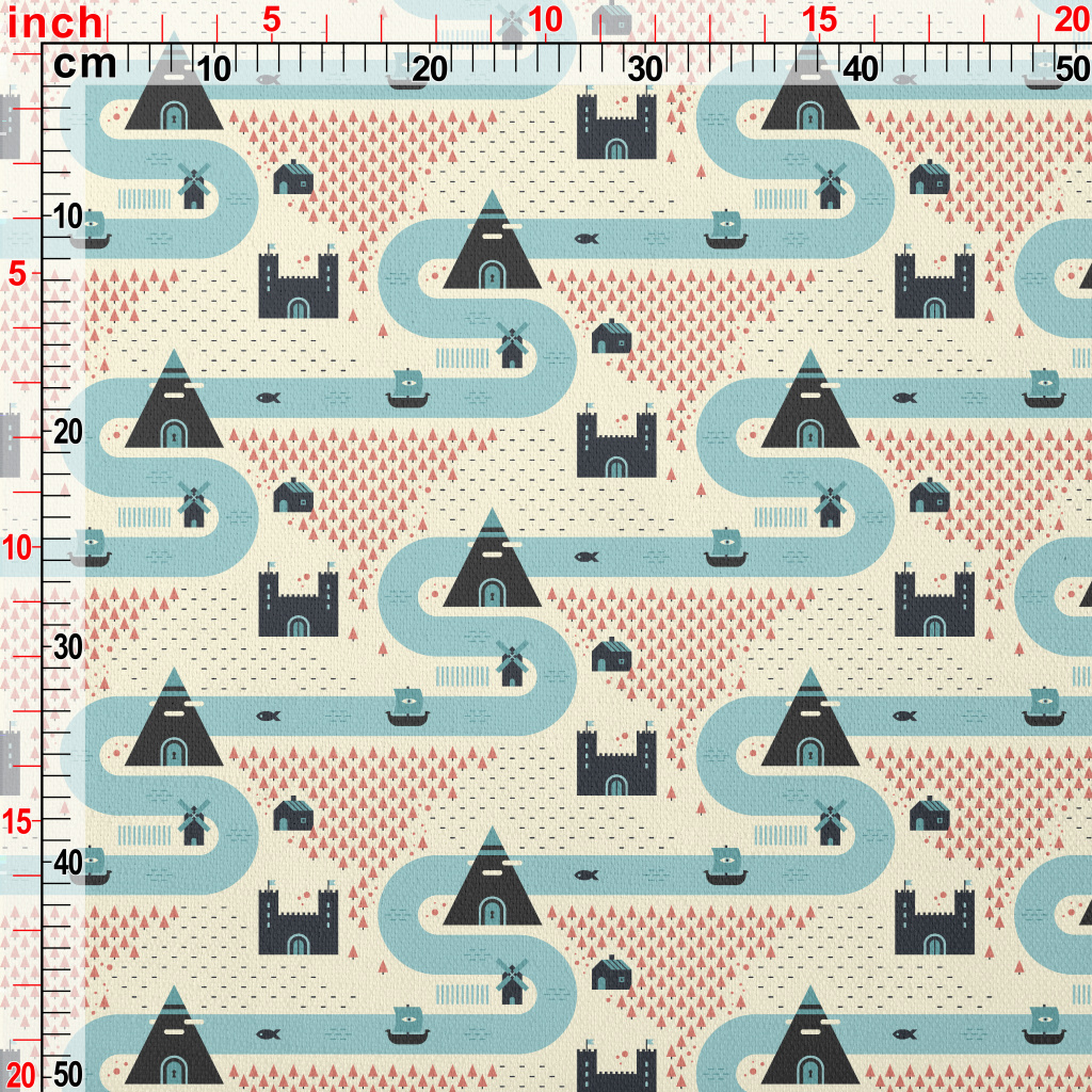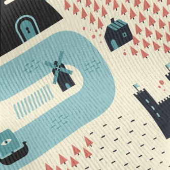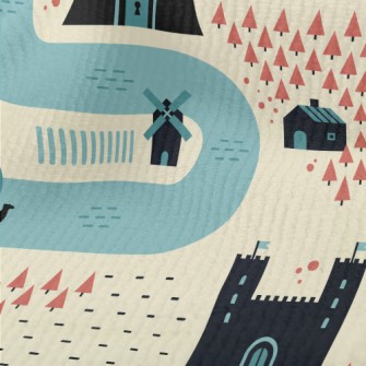 卡通中世紀村莊竹節麻(幅寬150公分)
