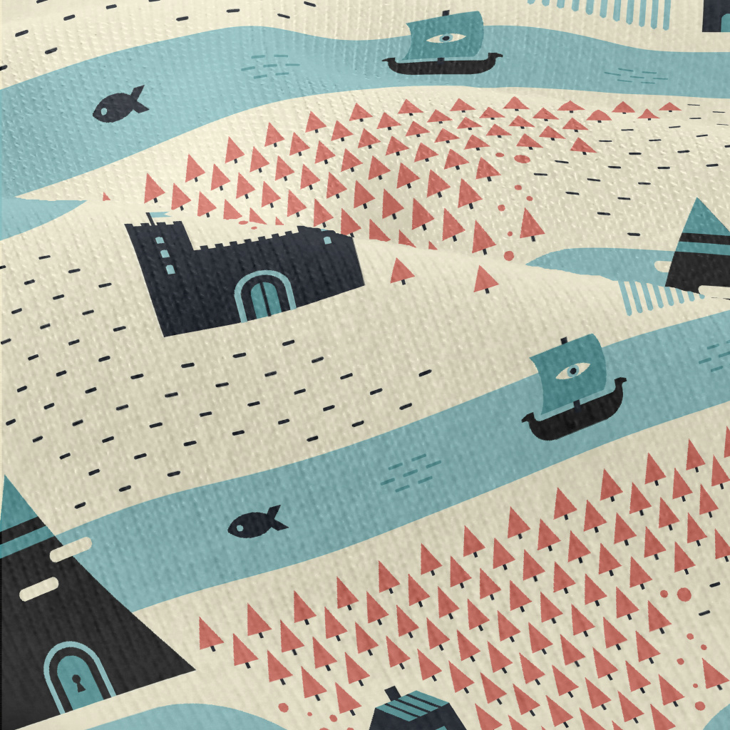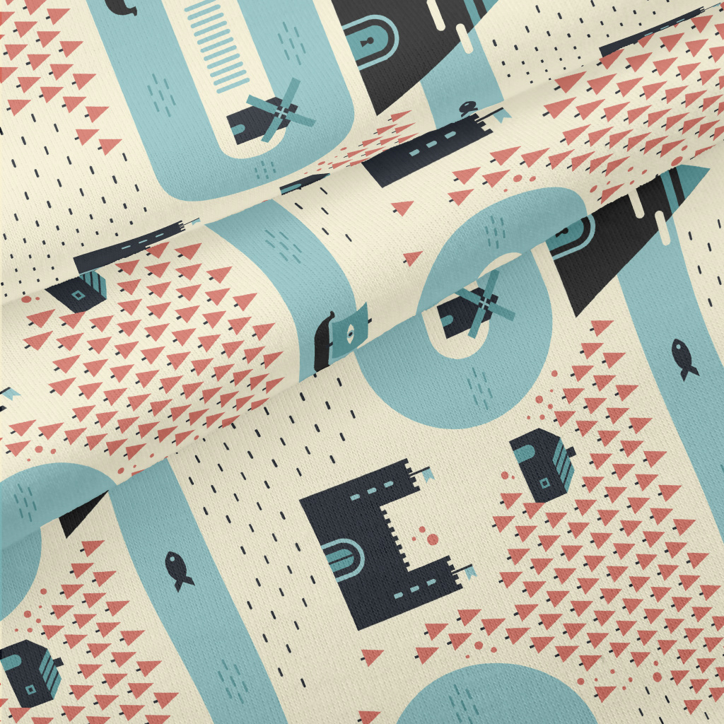 卡通中世紀村莊仿棉布(幅寬150公分)