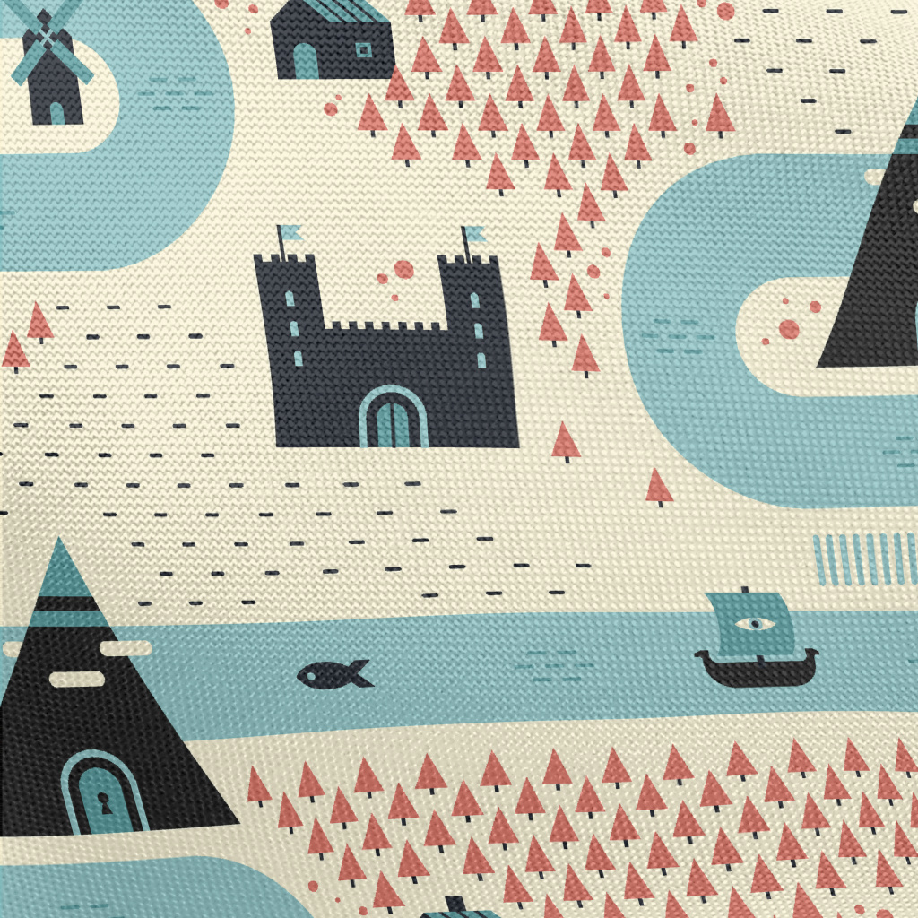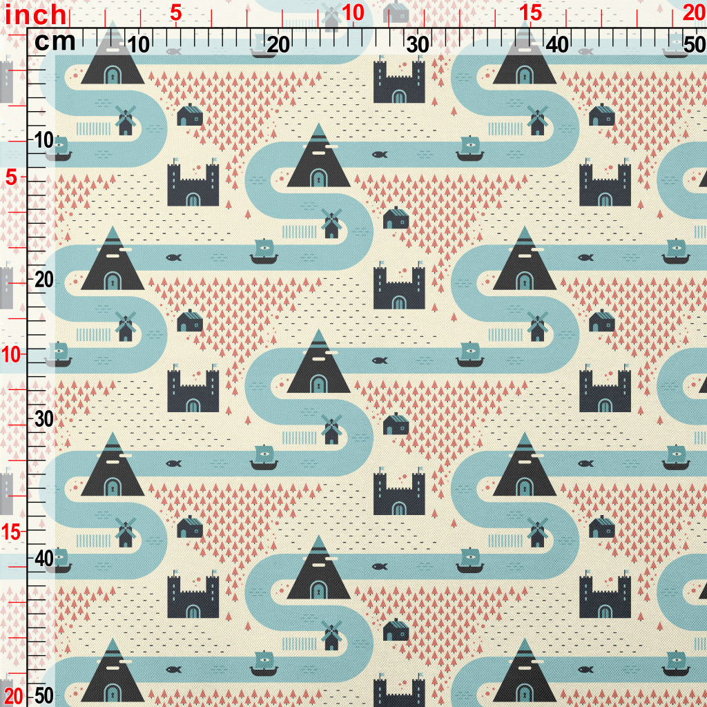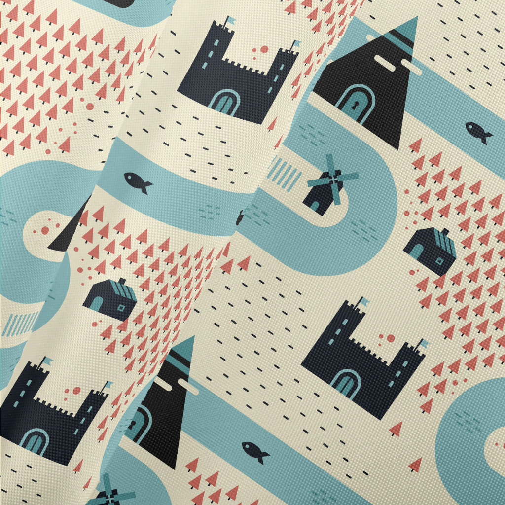 卡通中世紀村莊春亞紡(幅寬160公分)