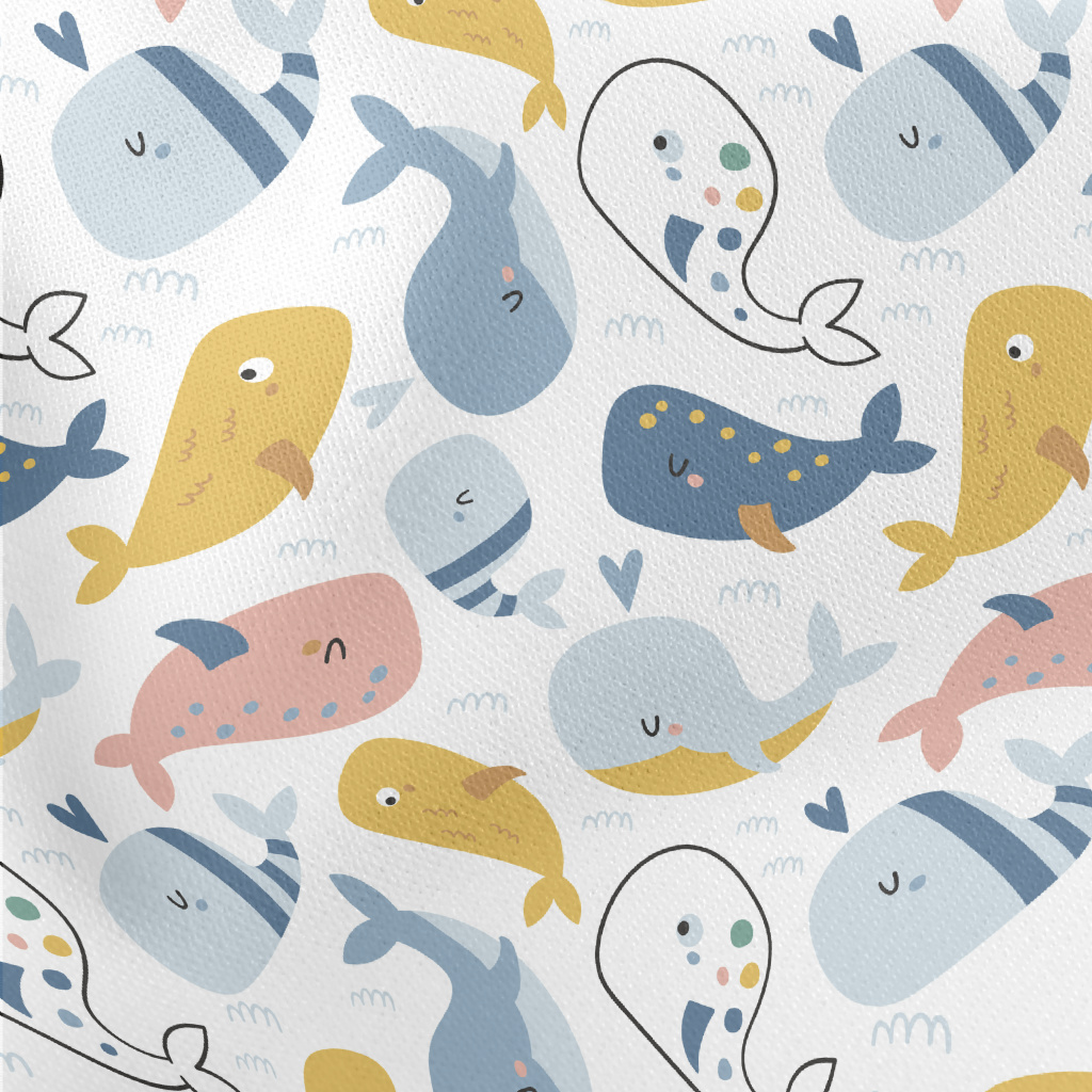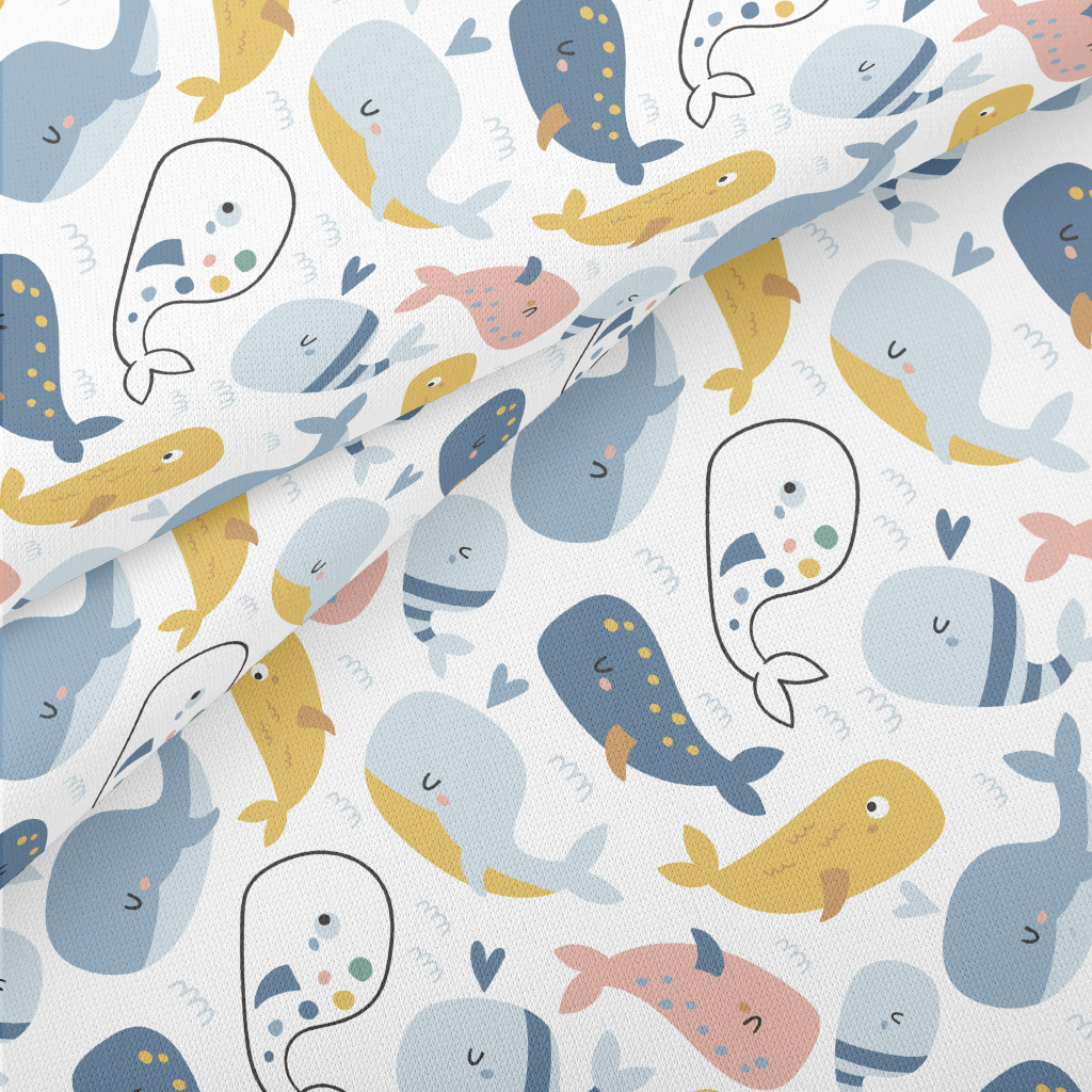 塗鴉彩色鯨魚薄棉布(幅寬150公分)