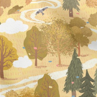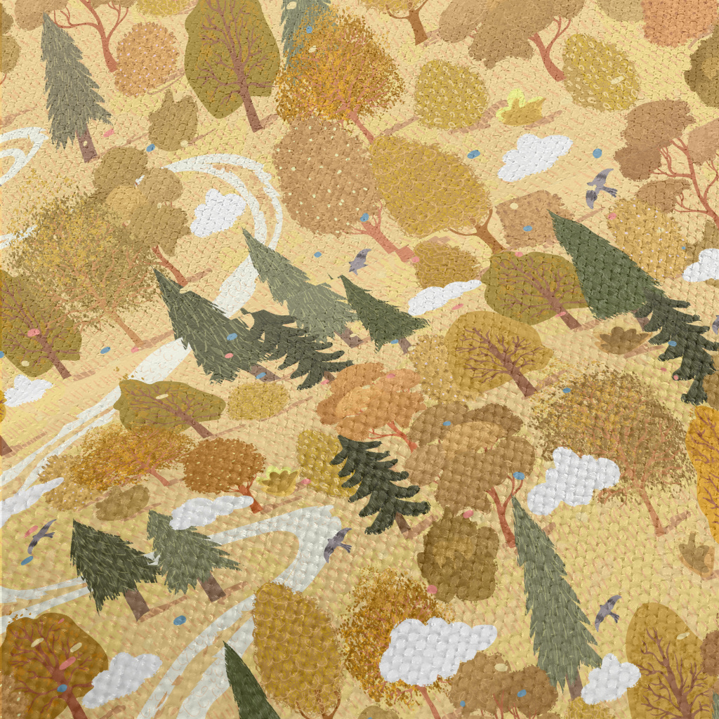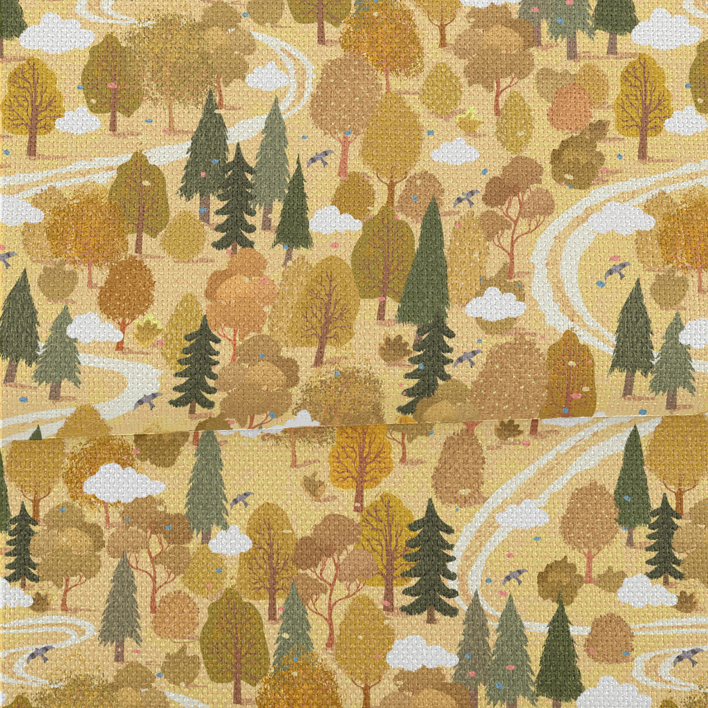 手繪夏日森林麻布(幅寬150公分)