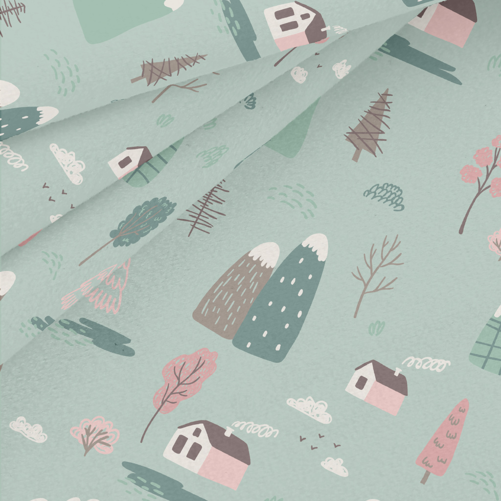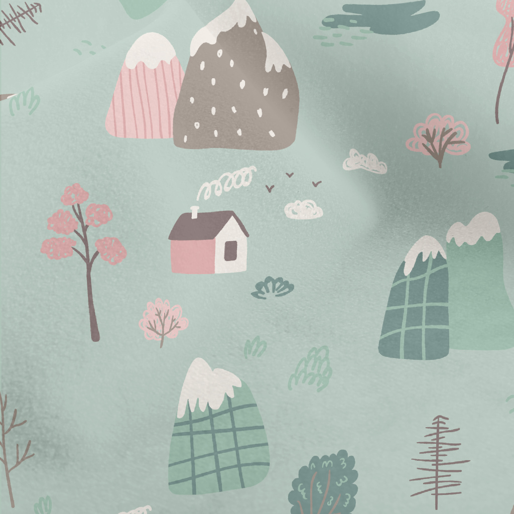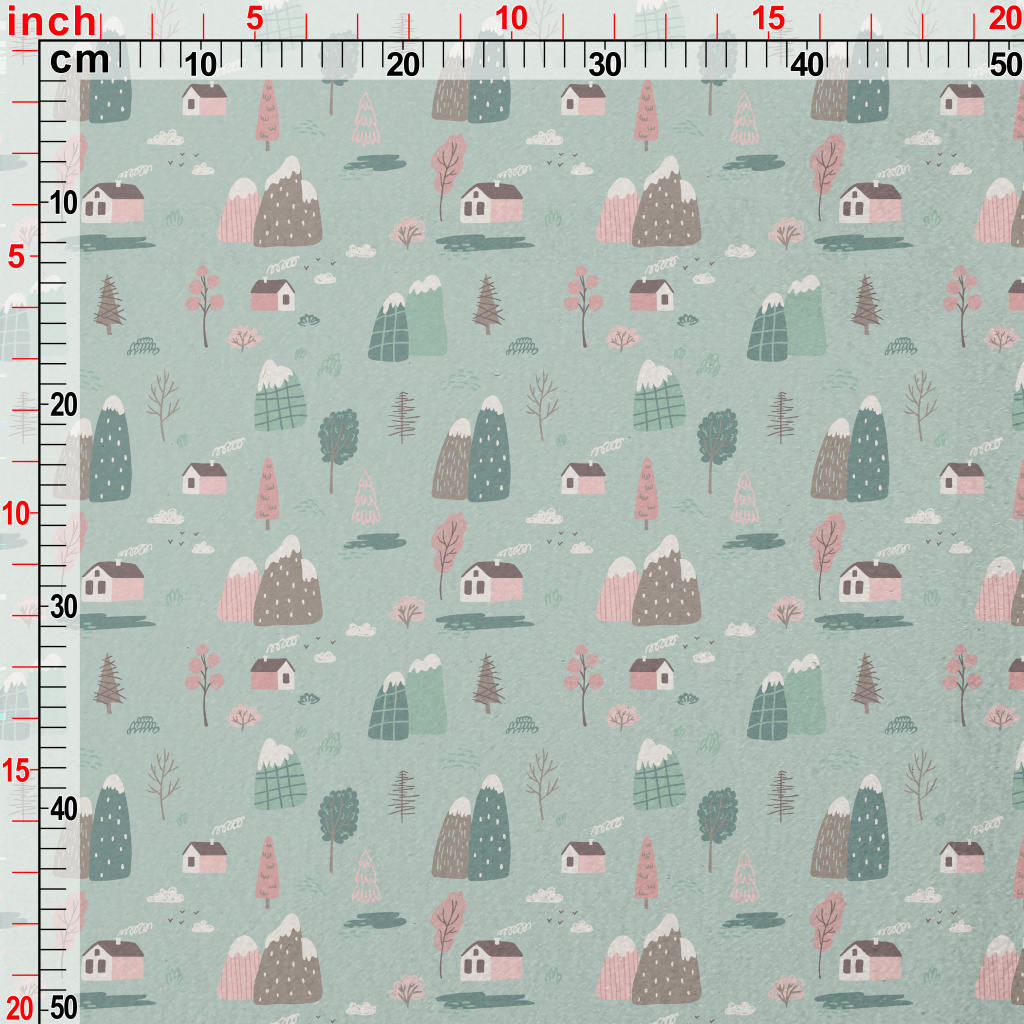 手繪鄉村小屋水晶絨(幅寬160公分)