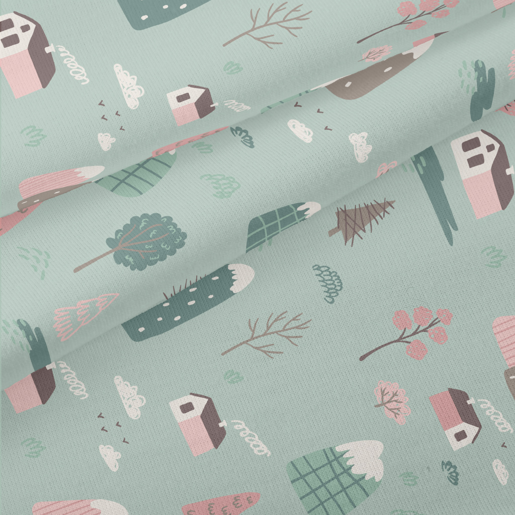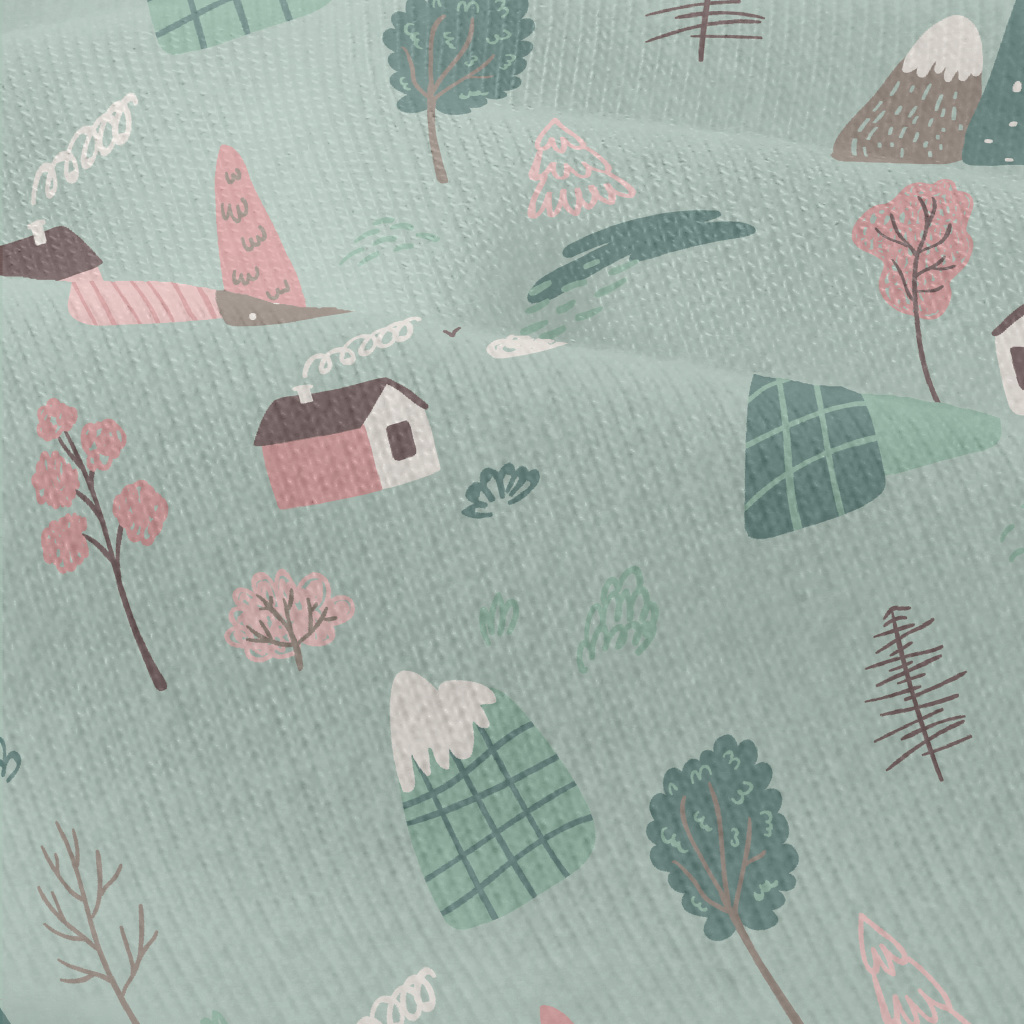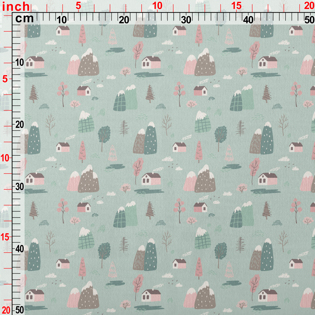 手繪鄉村小屋仿棉布(幅寬150公分)
