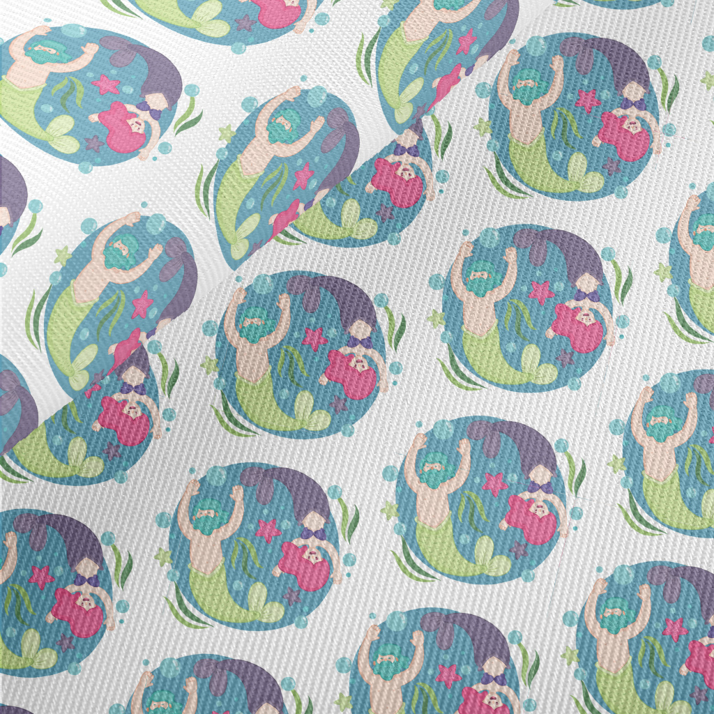 手繪快樂美人魚斜紋布(幅寬150公分)
