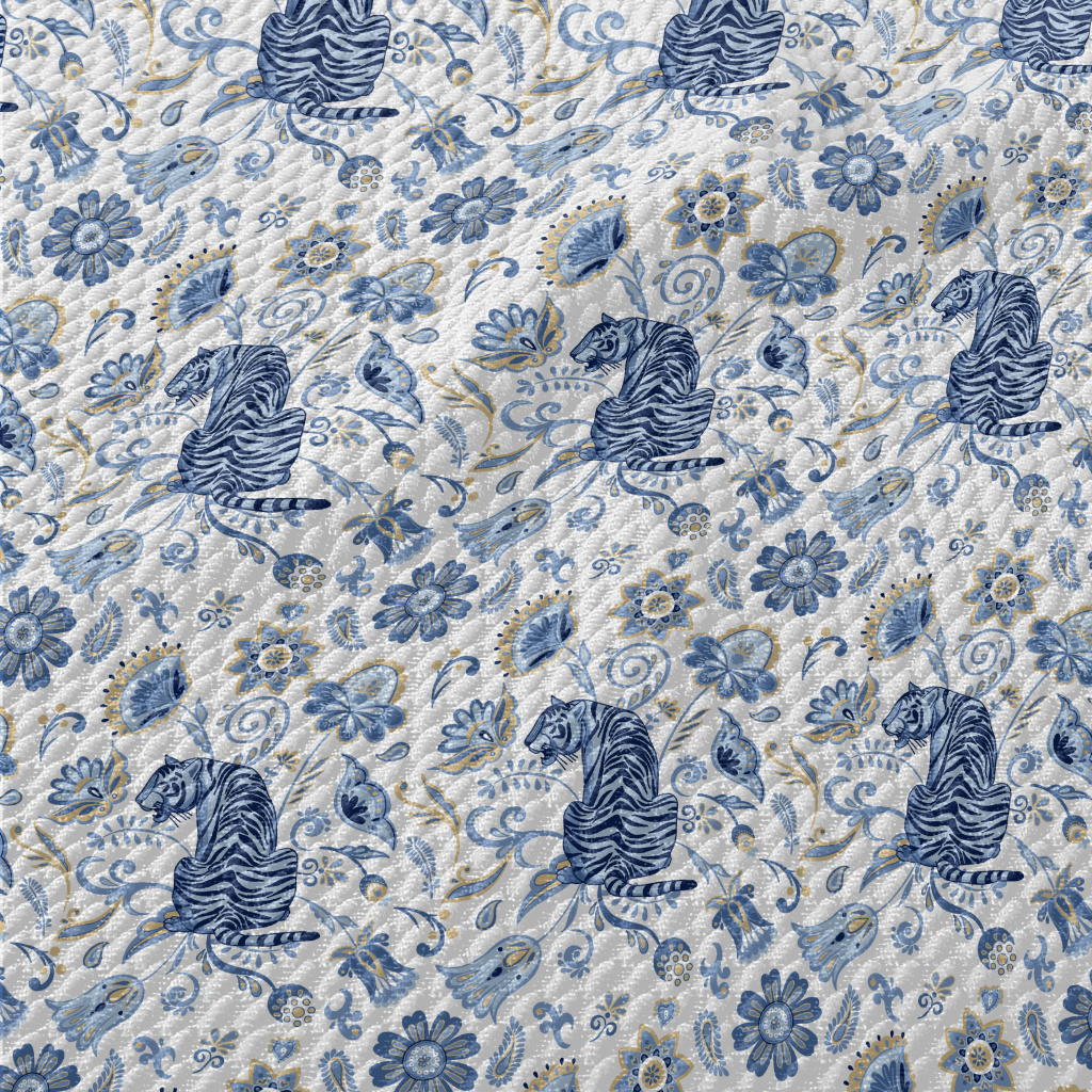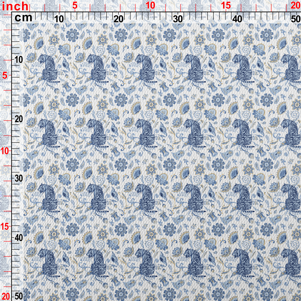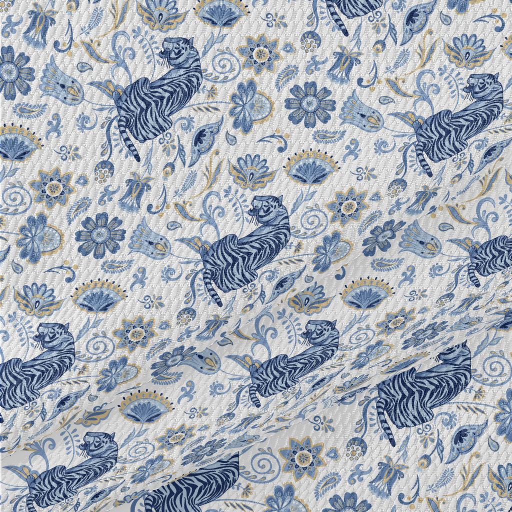 藍色老虎與花朵泡泡布(幅寬160公分)